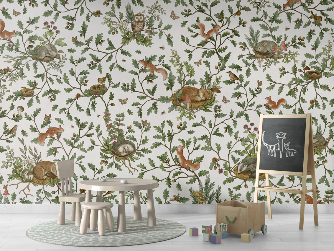 Φωτοταπετσαρία Playful Woods, white – Kikki Belle 60926