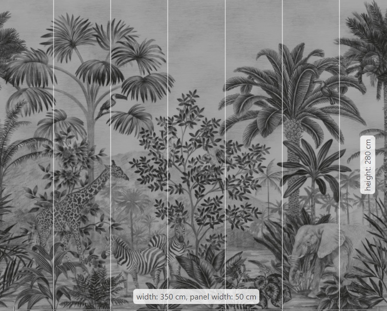 Μια δροσερή ταπετσαρία με μοντέρνα ασπρόμαυρη εμφάνιση με εξωτικά ζώα και τροπικά φυτά.