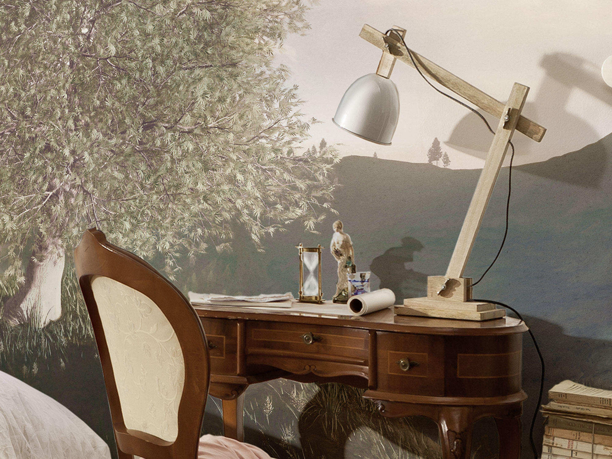 Στο λόφο βρίσκεται ένα μεγάλο φυλλοβόλο δέντρο. Θα ήταν συναρπαστικό να μάθουμε τι έχει ήδη δει αυτό το δέντρο. Αυτή η λήψη τοπίου είναι τόσο περίτεχνα σχεδιασμένη που ενθουσιάζει όσους την παρατηρούν. Η χρωματική διαβάθμιση του ουρανού, τα σύννεφα σε απαλό ροζ χρώμα και τα λεπτά φύλλα των δέντρων σε αυτό το μοτίβο, εύκολα σας κάνει να χαθείτε στις σκέψεις σας!