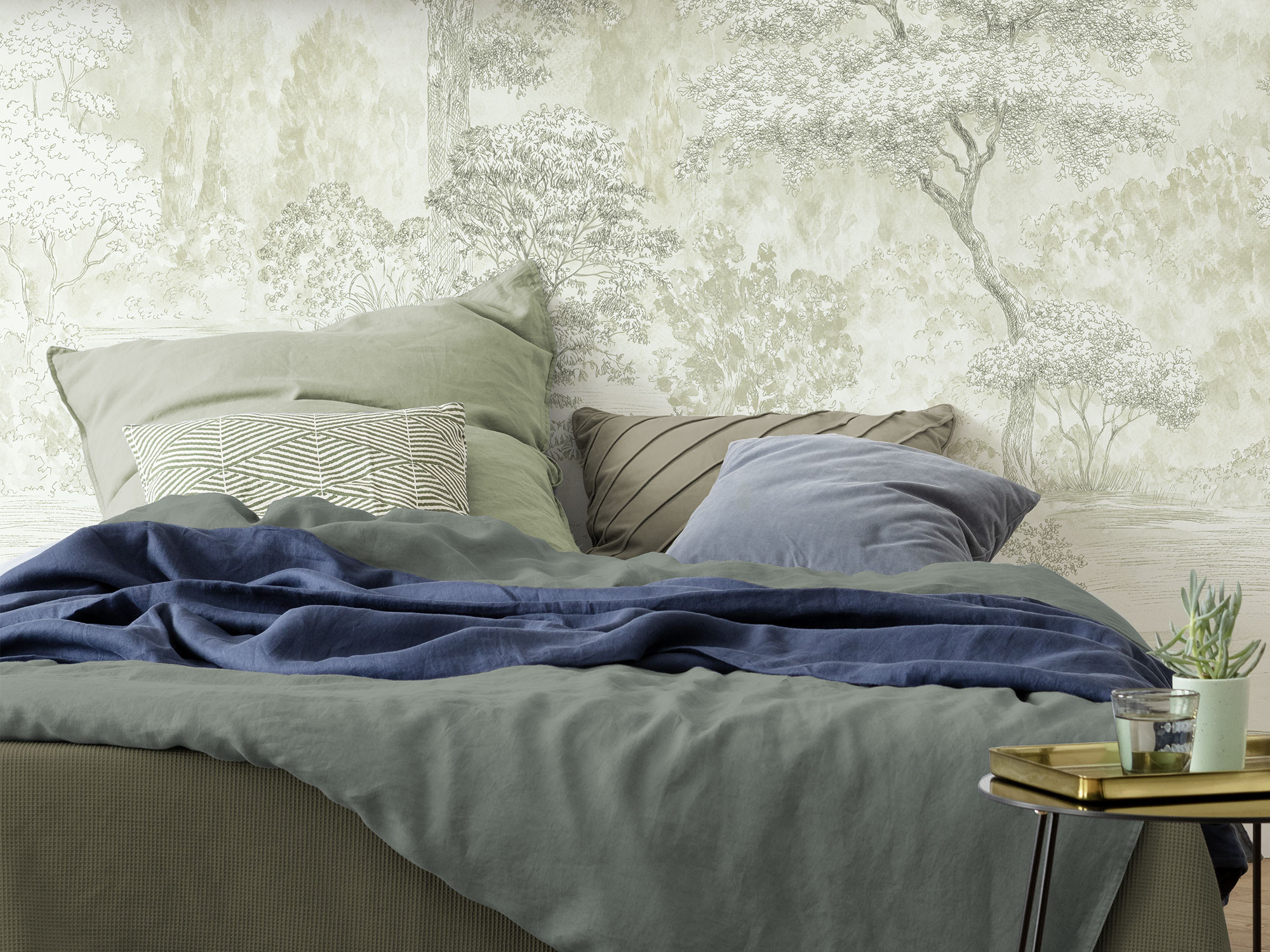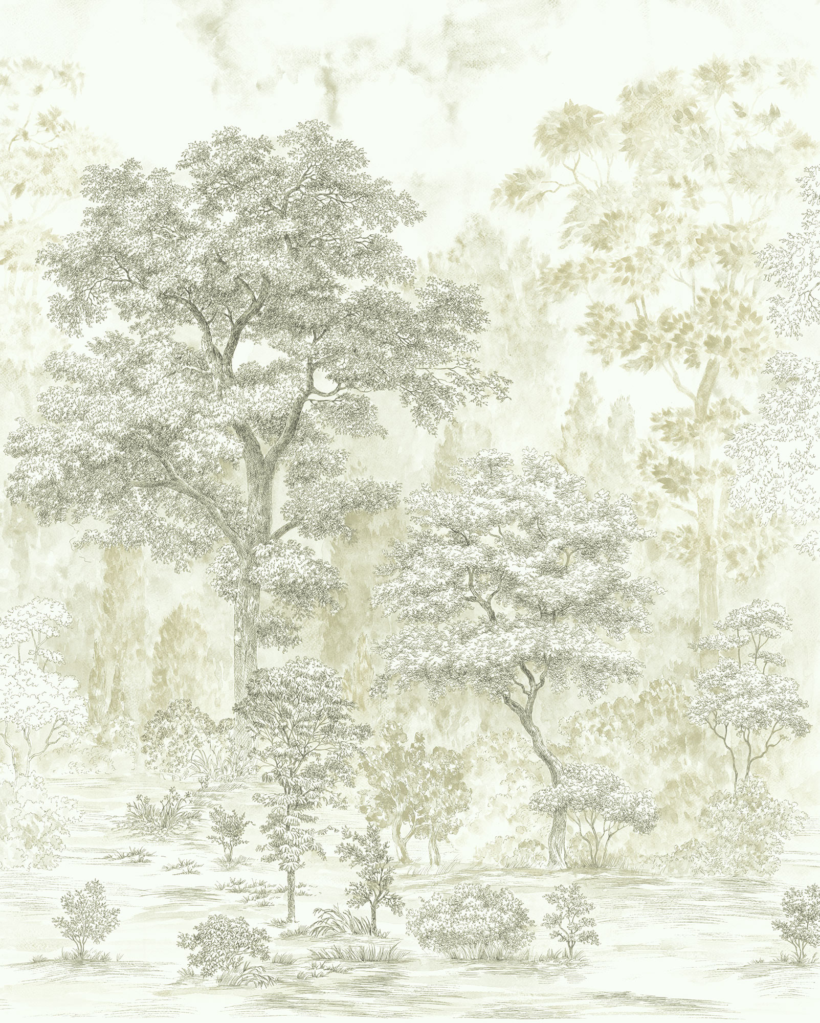 TΤα παστέλ πράσινα δέντρα σε αυτή τη ταπετσαρία είναι αμυδρά ορατά. Η πολύ λεπτή ζωγραφική προσθέτει μια πινελιά κομψότητας και φινέτσας στο σχέδιο, με τα μεγάλα και τα μικρά δέντρα να ενώνονται για να σχηματίσουν ένα παραμυθένιο δάσος και να ενσαρκώσουν την ομορφιά της φύσης.