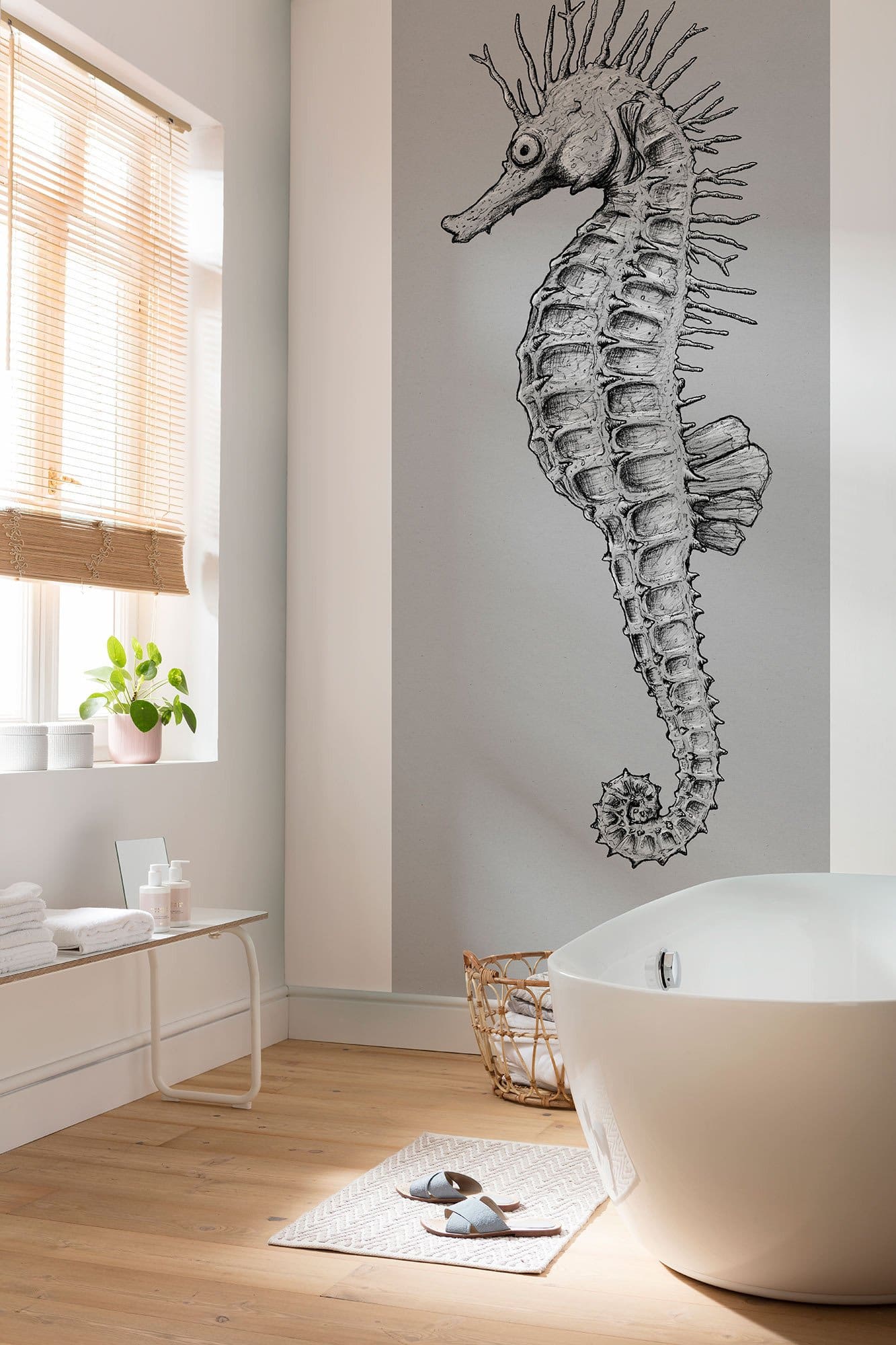 The seahorse, a symbol of beauty, grace and peacefulness, cuts a fine figure as a wall decoration.