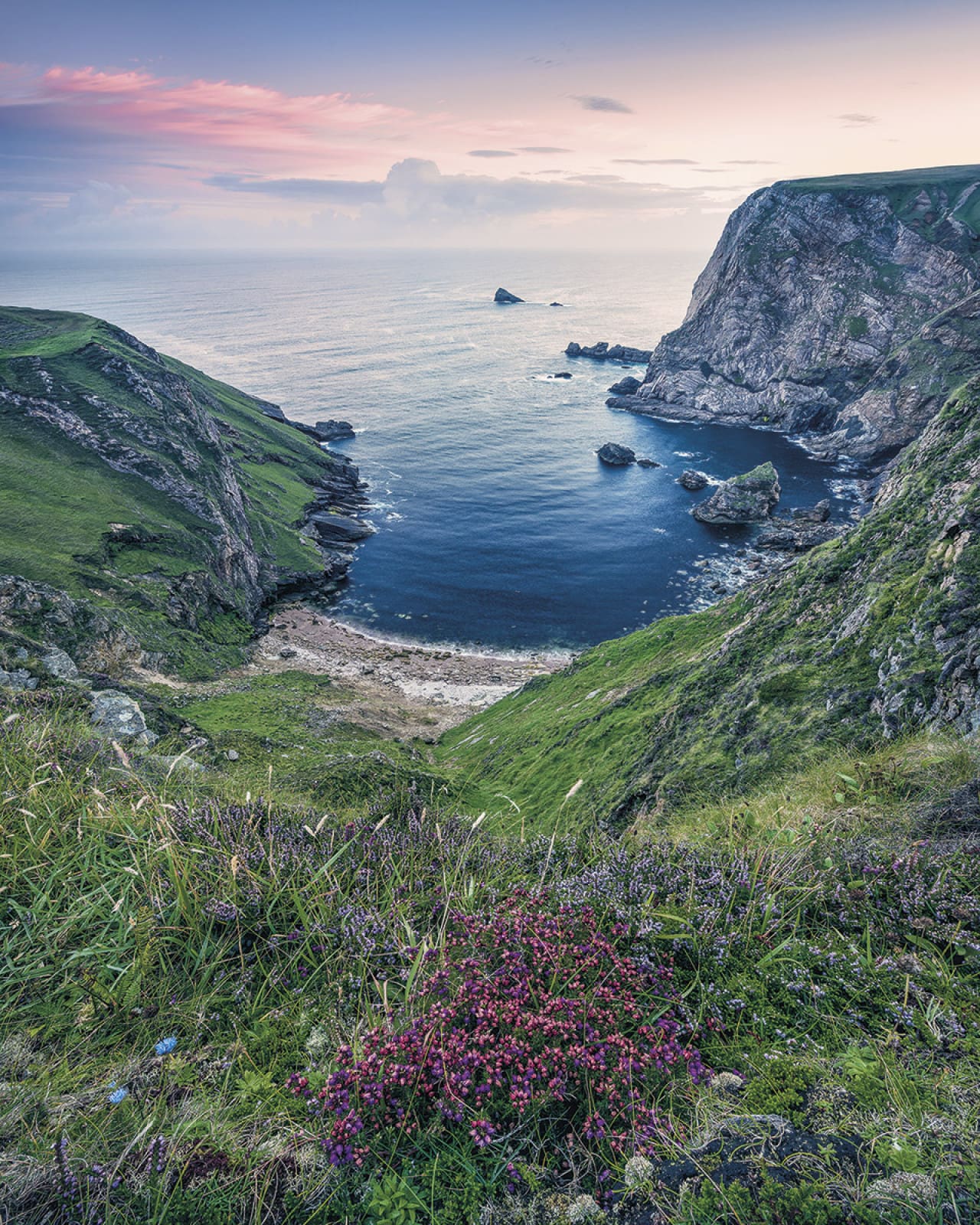 The famous “Blue Bay” of Ireland: the deep blue colored water sets a perfect contrast to the green range of hills.