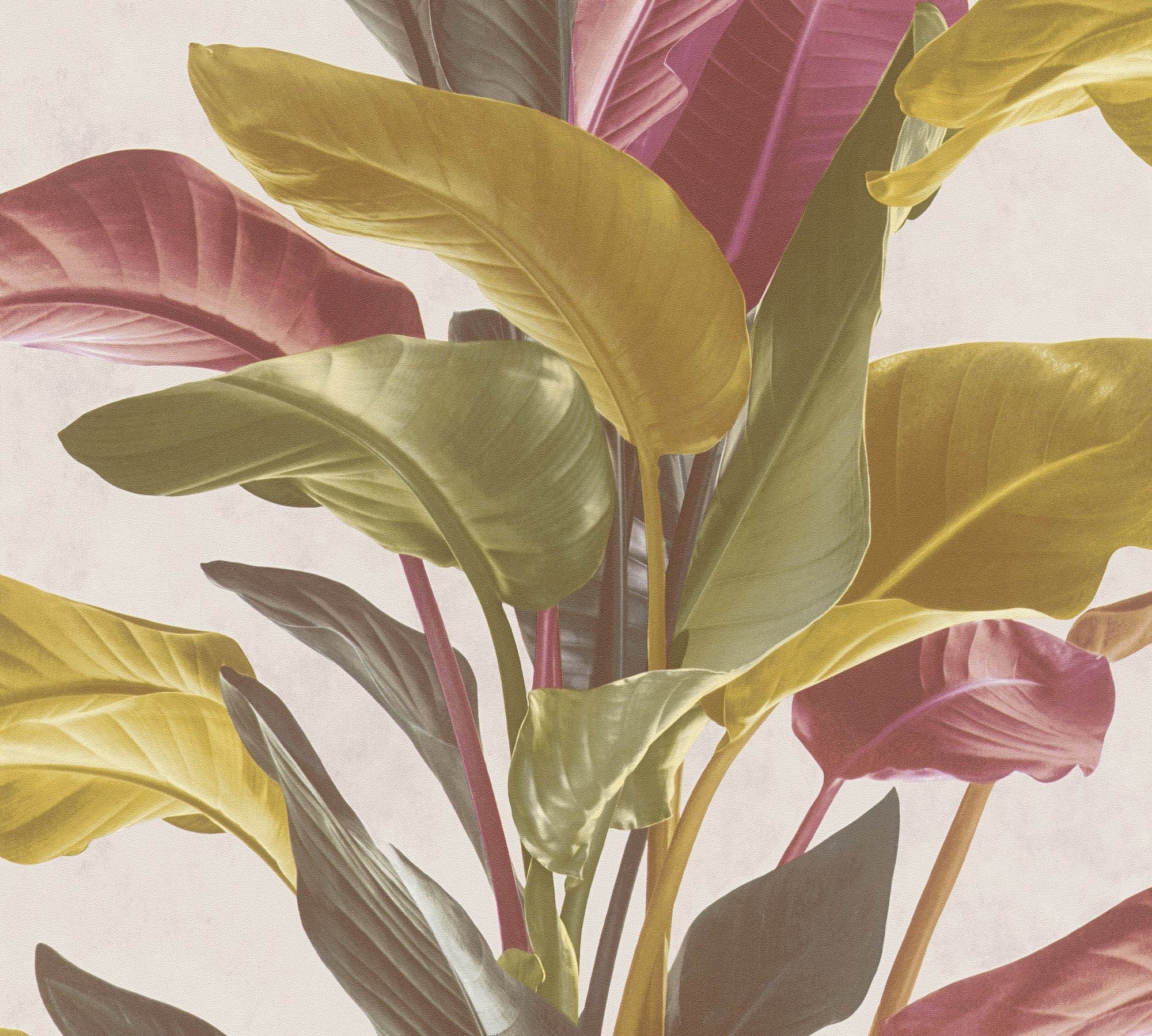 φλοράλ σχέδιο με κόκκινα, πράσινα και κίτρινα φύλλα σε κρεμ φόντο για την συλλογή Metropolitan Stories II.