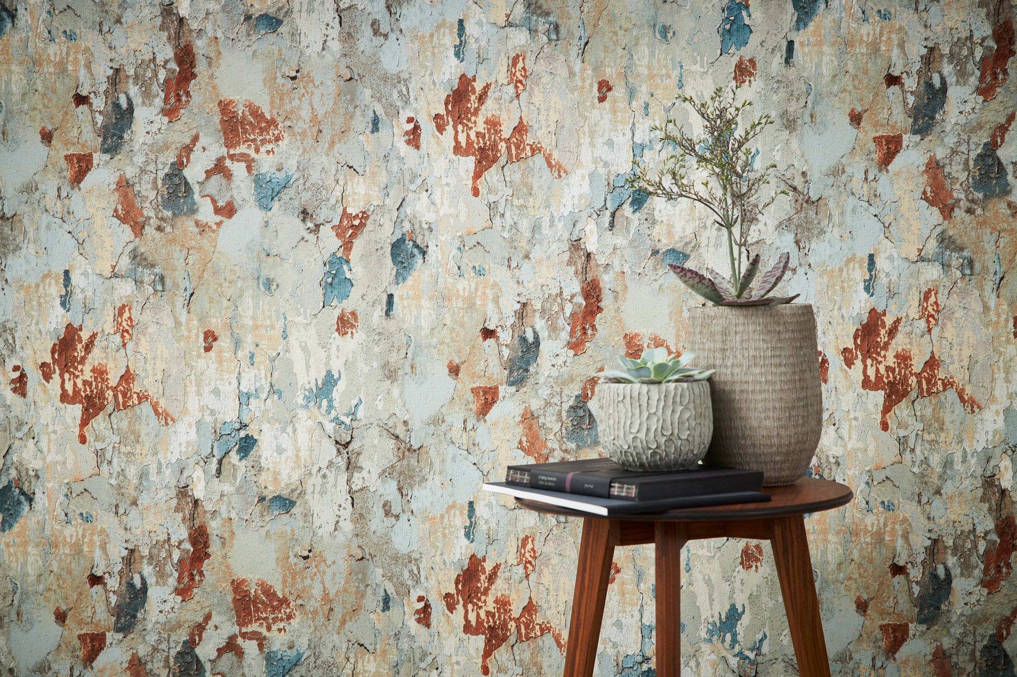 Τεχνοτροπία τοίχου με καφέ, μπλε, γκρι και πράσινο χρώμα για την συλλογή Metropolitan Stories II.