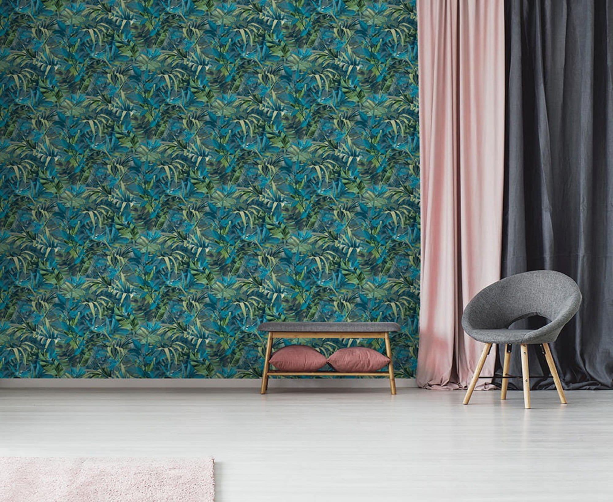Φλοράλ σχέδιο με εξωτική όμορφια σε πράσινο και μπλε χρώμα από την συλλογή Jungle Fever.