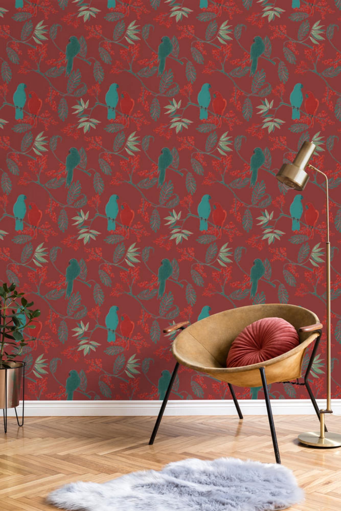Φλοράλ με παπαγάλους σε έντονο κόκκινο και πράσινο χρώμα από την συλλογή Jungle Fever.