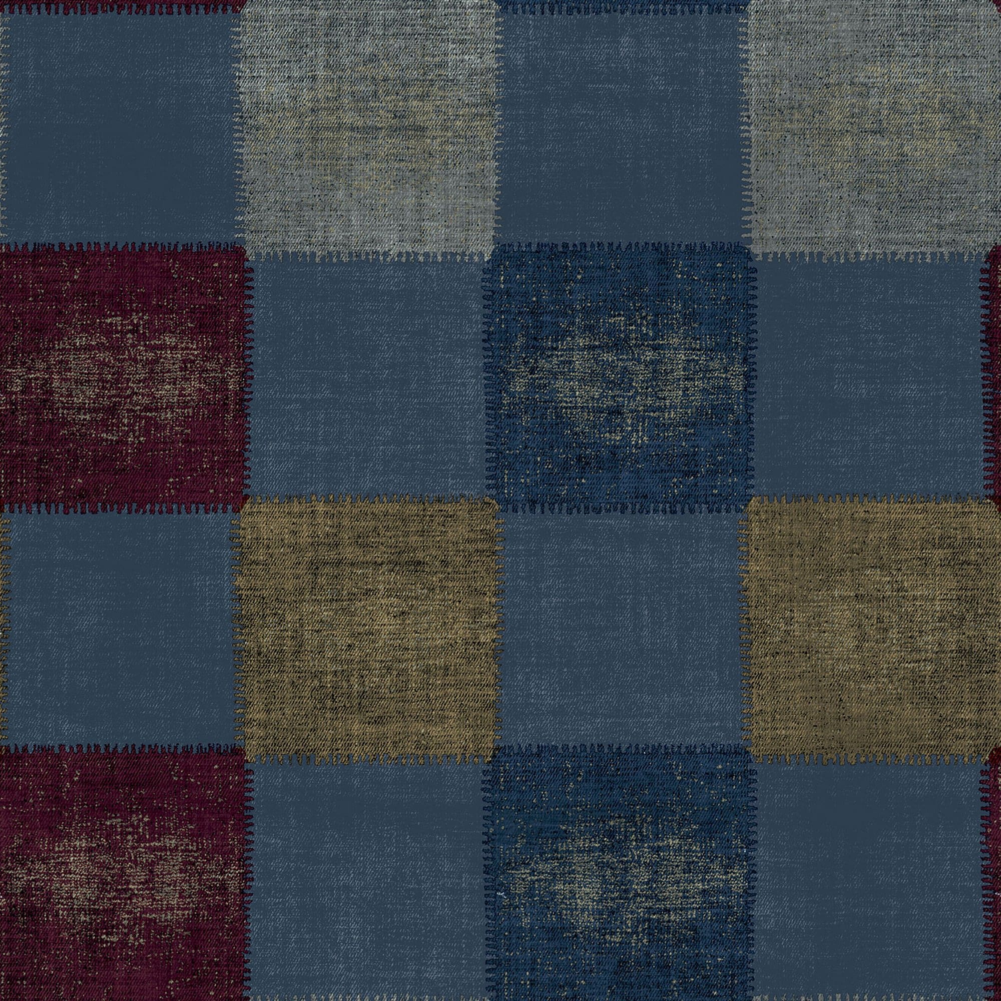 Γεωμετρικό σχέδιο με τετράγωνα σε μπλε, κόκκινο, γκρι και χρυσό χρώμα για την συλλογή Zero.