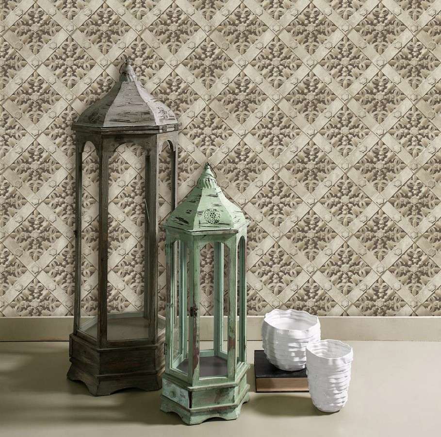 Τα εντυπωσιακά τρισδιάστατα μοτίβα αποτελούν το χαρακτηριστικό γνώρισμα των ταπετσαριών της σύγχρονης συλλογής "Horizons" από την γαλλική εταιρεία Ugepa με πρωτοποριακά σχέδια που δημιουργήθηκαν για ανθρώπους που αναζητούν μια μοναδική ιδέα εσωτερικού σχεδιασμού. Μια ποικιλία μοτίβων: σχέδια εμπνευσμένα από τη φύση, τσιμέντο, σανίδες, πέτρα και μάρμαρο και διακοσμήσεις από σφυρήλατο σίδηρο δημιουργούν μοντέρνες και εκφραστικές εντυπώσεις στο εσωτερικό. Οι απαλές αποχρώσεις του μπεζ, καφέ και γκρι συμπληρώνονται από ζωντανές πράσινες, ζεστές κόκκινες και κομψές νότες ροδιού. Στον κωδικό L42509 θα βρείτε απομίμηση σφυρήλατου σιδήρου με διακοσμητικά, σιδερένια στολίδια.
