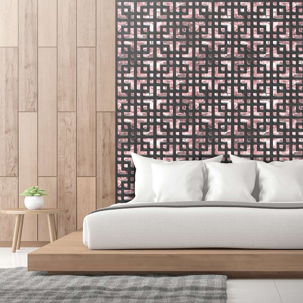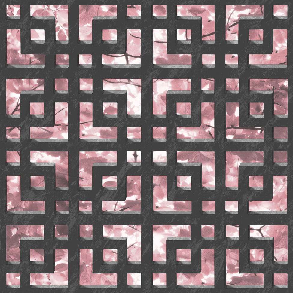 Ρόζ φυτά πίσω από μαύρο μεταλλικό πλέγμα για την συλλογή Horizons.