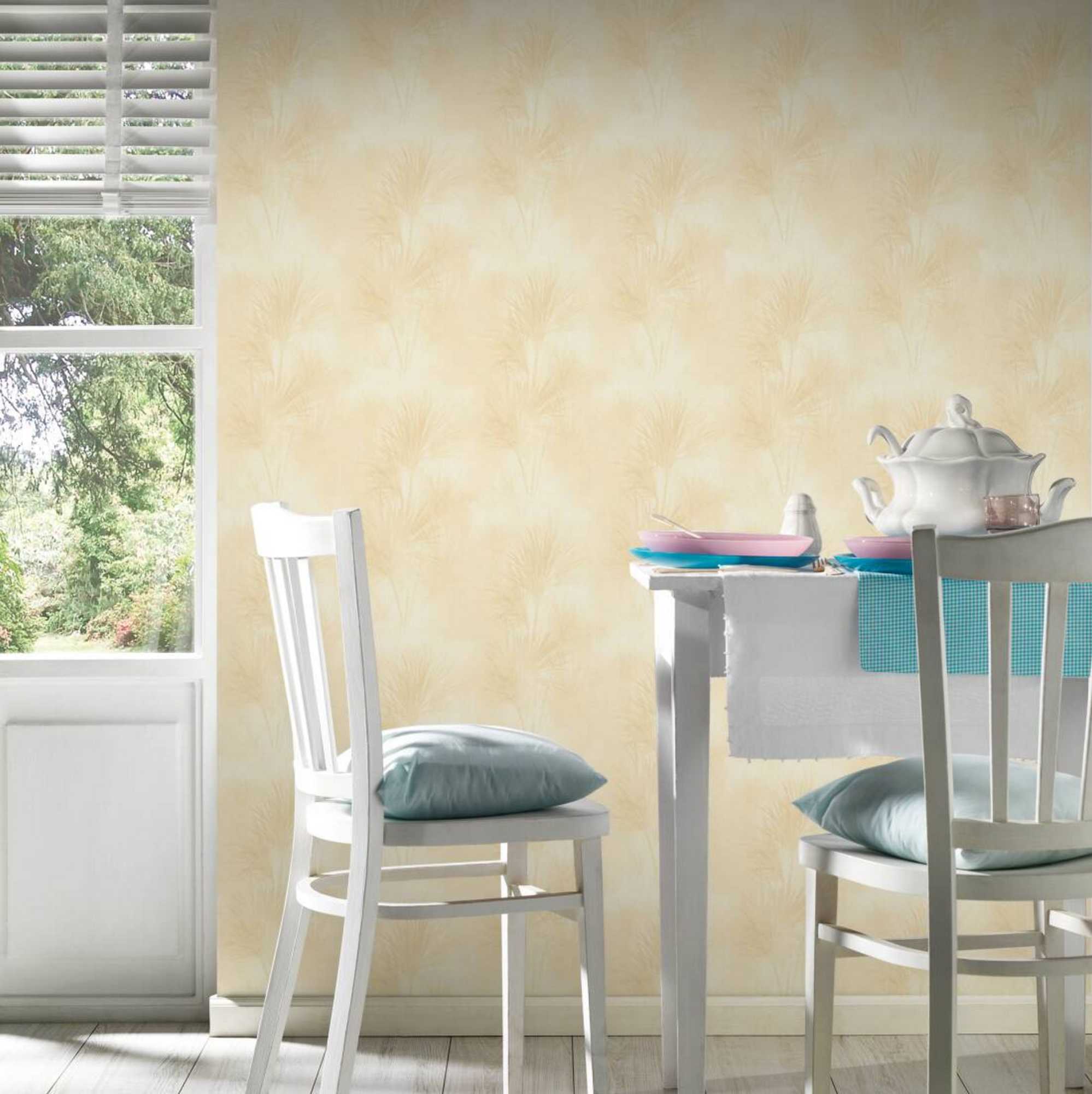 Φλοράλ ταπετσαρία τοίχου σε μπεζ,κίτρινο χρώμα και μοντέρνο σχέδιο για την συλλογή Exotic Life.