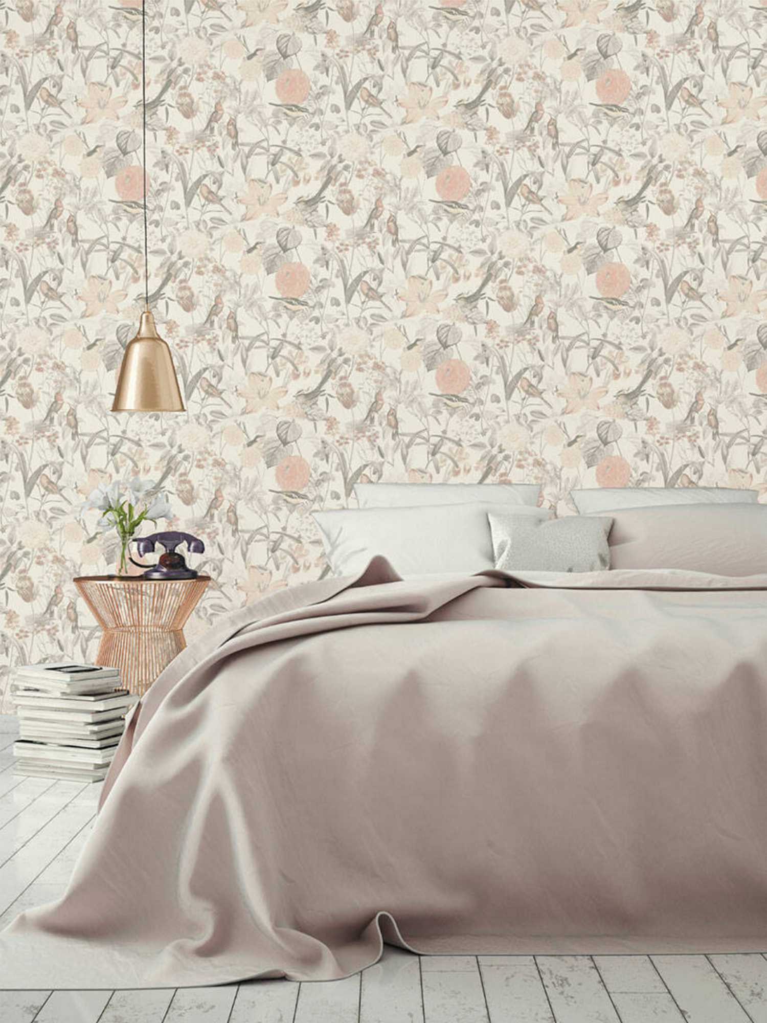 Φλοράλ ταπετσαρία τοίχου σε γκρι,ροζ χρώμα και μοντέρνο σχέδιο για την συλλογή Exotic Life.