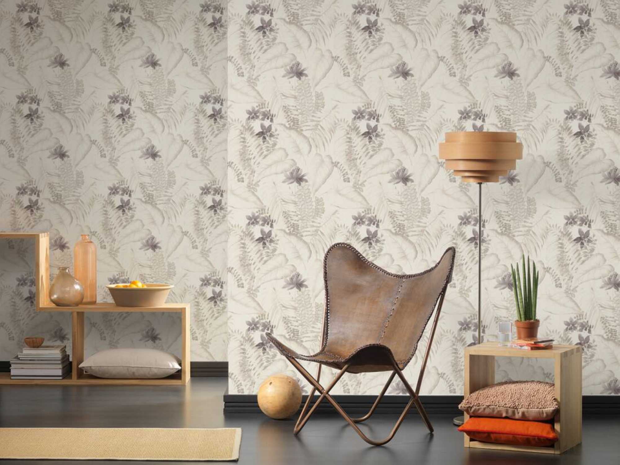 Φλοράλ ταπετσαρία τοίχου σε μπεζ,γκρι,καφέ χρώμα και μοντέρνο σχέδιο για την συλλογή Exotic Life.