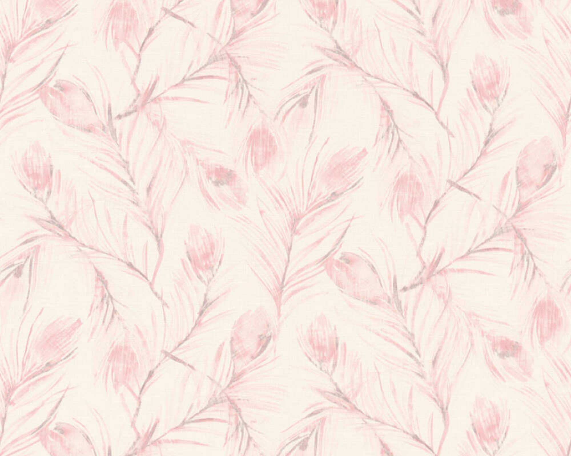Μοντέρνα φλοράλ ταπετσαρία τοίχου σε ροζ,γκρι,λευκό,ασημί μεταλλικό χρώμα για την συλλογή Exotic Life.