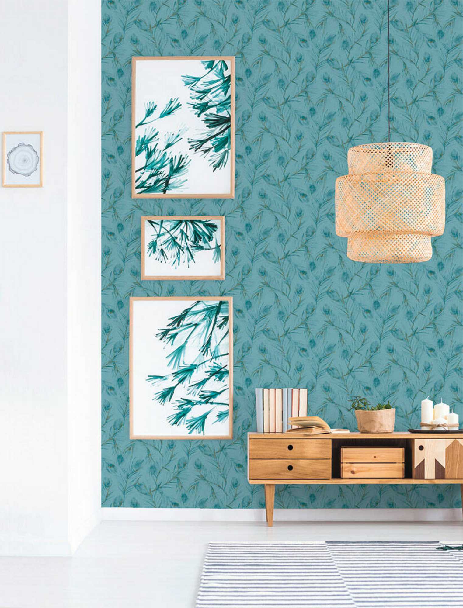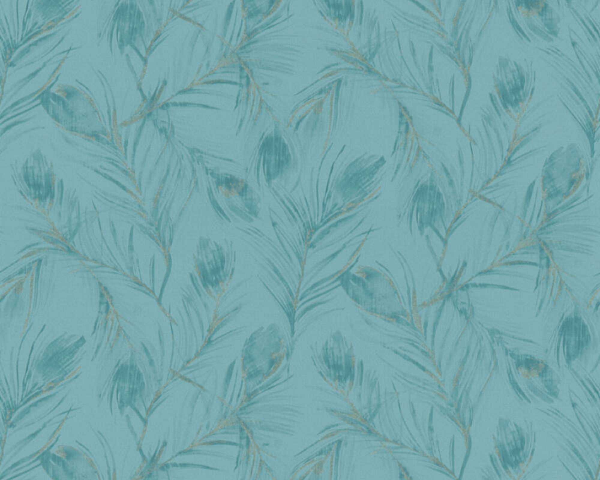 Μοντέρνα φλοράλ ταπετσαρία τοίχου σε μπλε,πράσινο,χρυσό μεταλλικό χρώμα για την συλλογή Exotic Life.