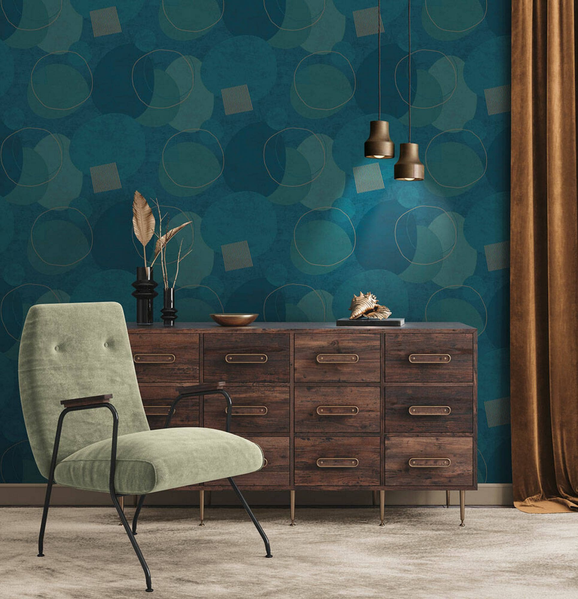 Οι ταπετσαρίες από τη συλλογή «GEO EFFECT» δείχνει μεγάλα τρίγωνα, γεωμετρικά ή κυκλικά σχήματα που σχεδιάζονται στο χέρι και εμπνέει τους λάτρεις του design με σύγχρονους χρωματισμούς. Στον κωδικό as385953 θα βρείτε μοντέρνο μοτίβο με κυκλικά σχήματα για να ντύσετε τους τοίχους σας.