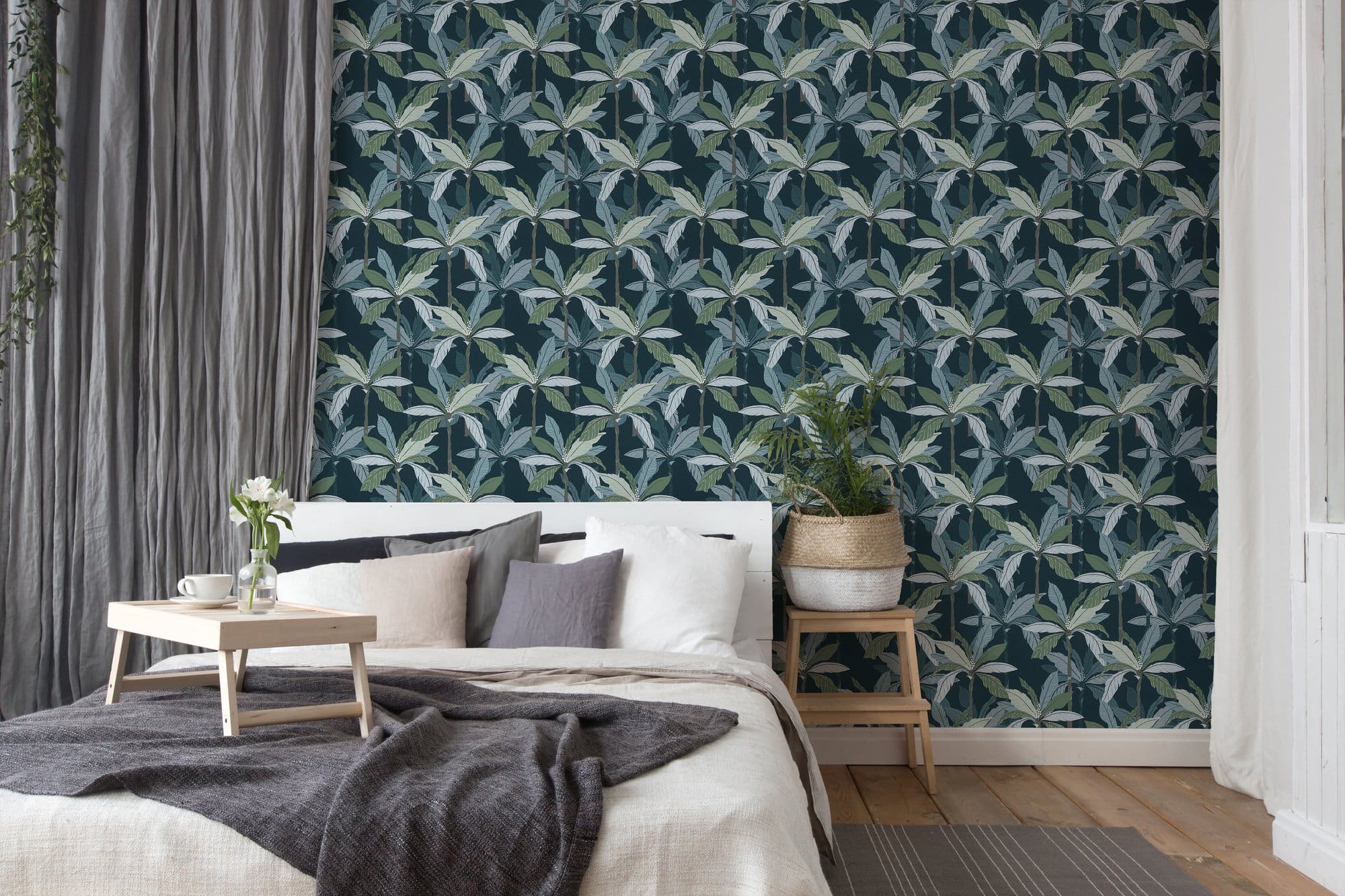 Φλοράλ Ταπετσαρία Τοίχου σε μπλε και πράσινες αποχρώσεις για την συλλογή Geo Nordic.