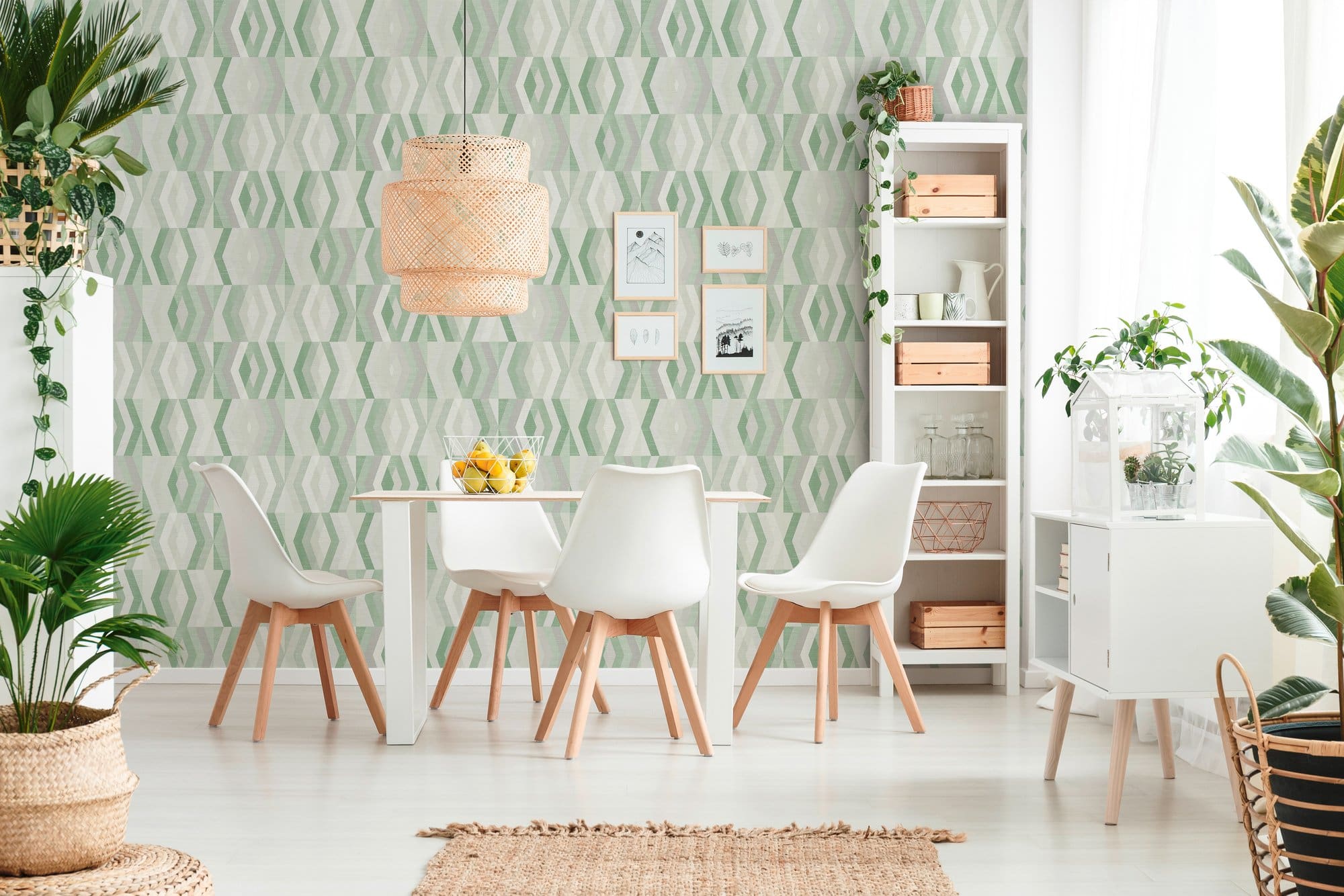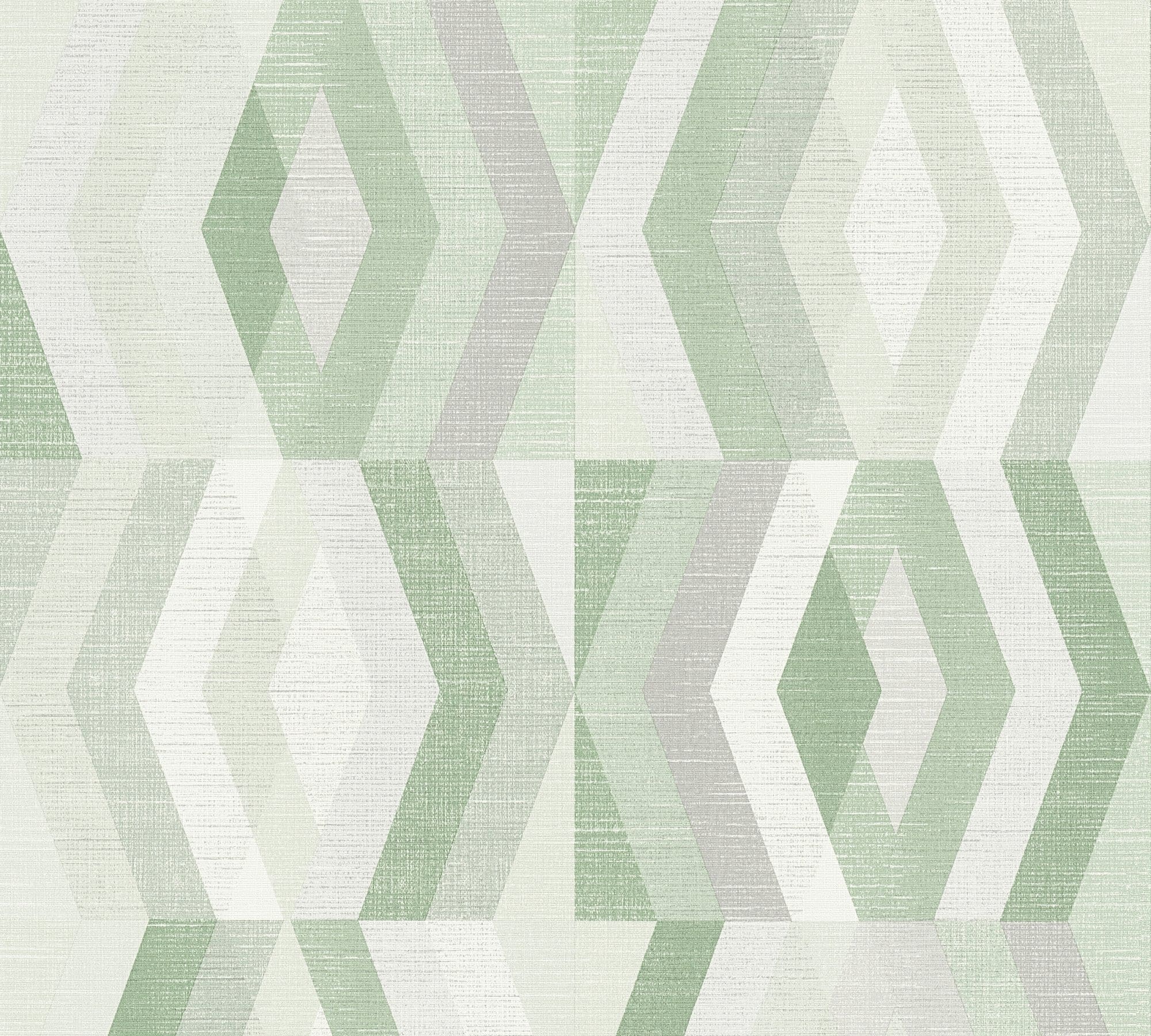 Ταπετσαρία Τοίχου με γεωμετρικά σχήματα σε γκρι και πράσινες αποχρώσεις για την συλλογή Geo Nordic.