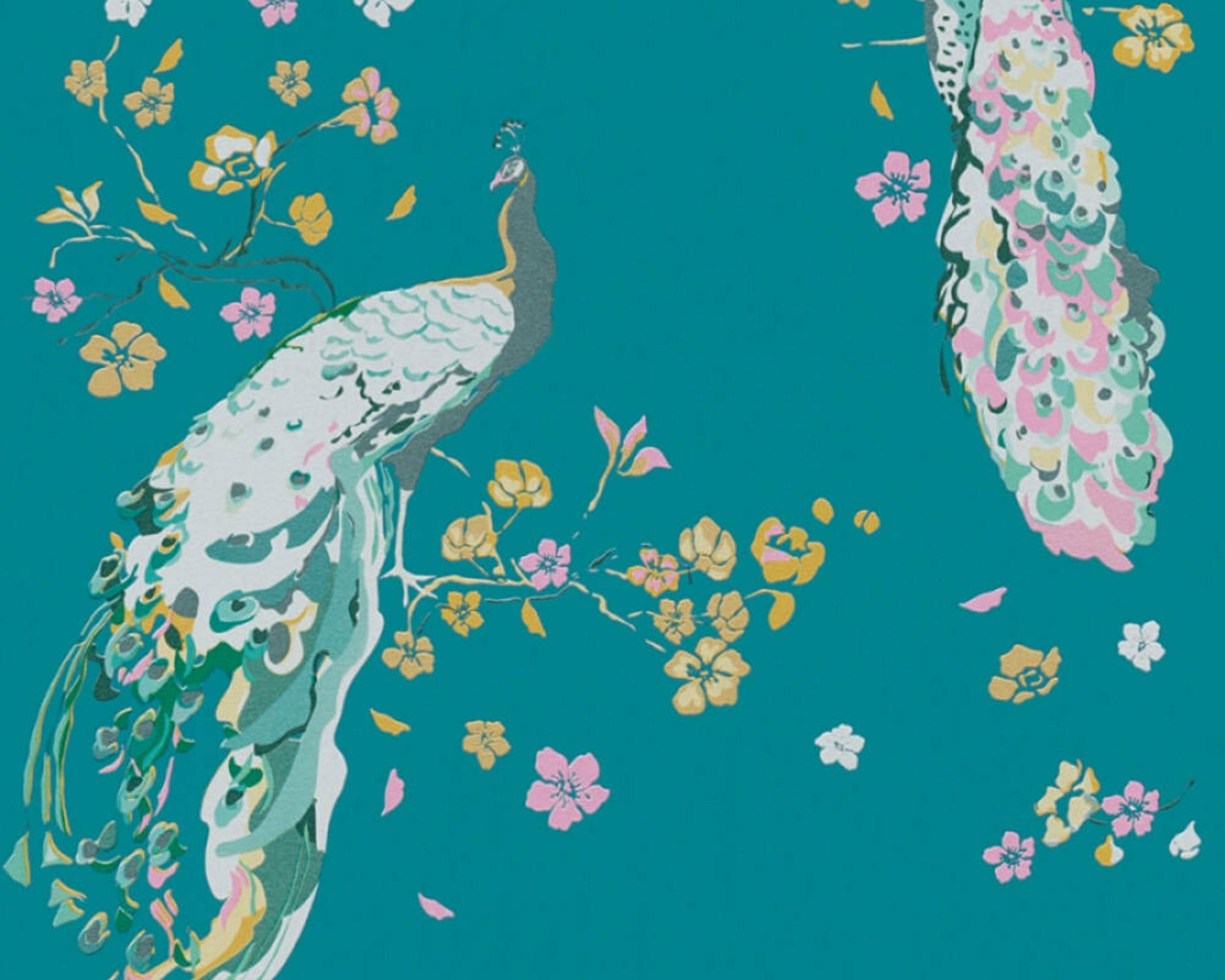 Φλοράλ μοτίβο με παγόνια σε τυρκουάζ φόντο για την συλλογή House of Turnowsky.