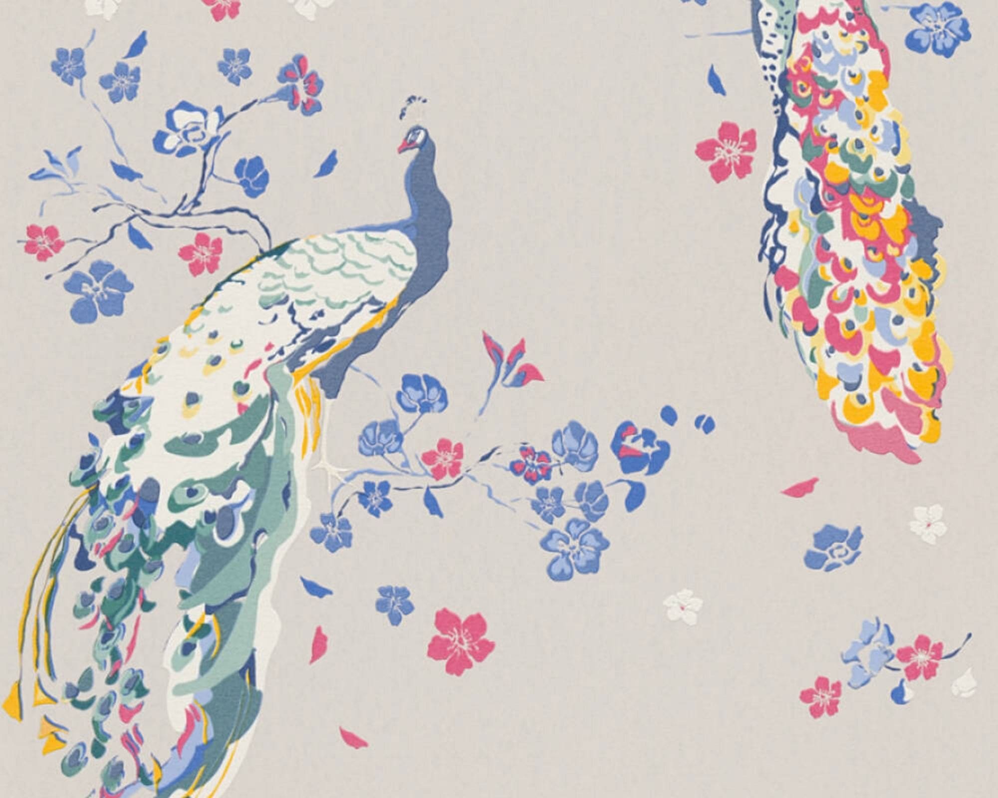 Φλοράλ μοτίβο με παγόνια σε μπεζ φόντο για την συλλογή House of Turnowsky.