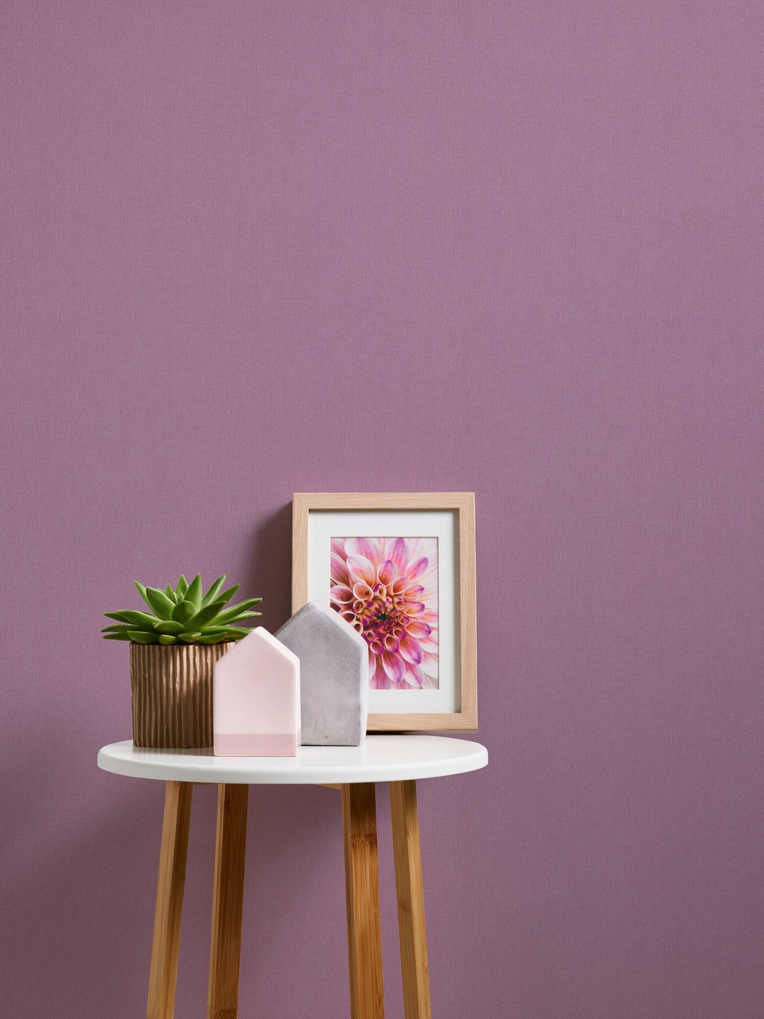 Ταπετσαρία τοίχου με υφάσμάτινη υφή σε μωβ χρώμα για την συλλογή Jungle Chic.