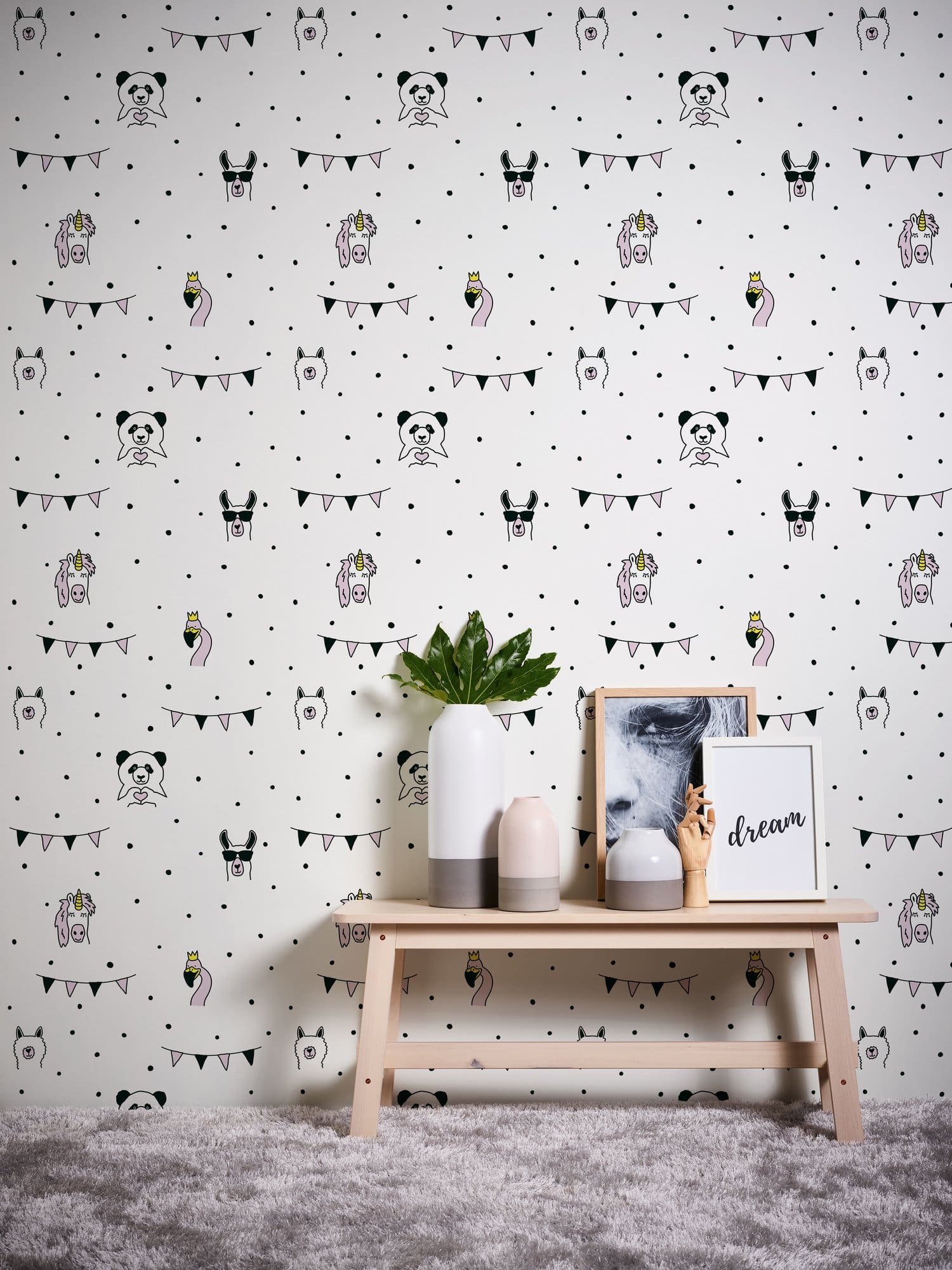 Παιδική ταπετσαρία τοίχου πουά και ζωάκια για την συλλογή Little Love.