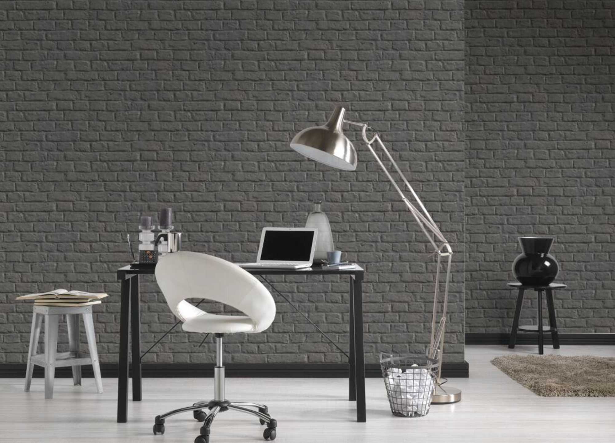 Ταπετσαρία τοίχου τούβλο με μοντέρνο σχεδιασμό σε γκρί-μαύρο χρώμα για την συλλογή Metropolitan Stories.