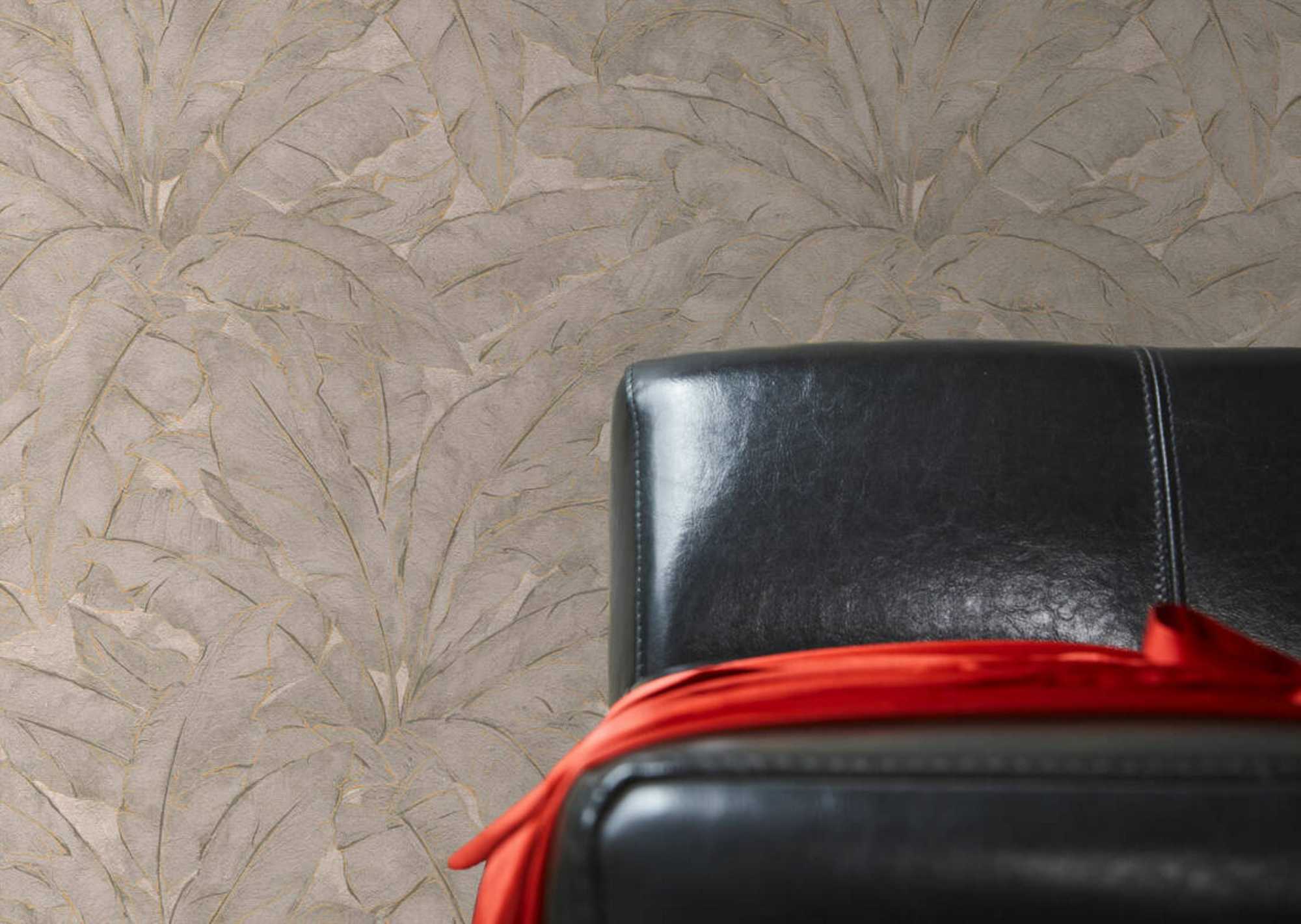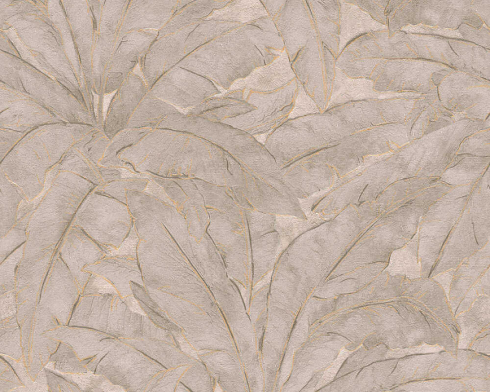 Ταπετσαρία τοίχου φυτά με φύλλα σε μπεζ, γκρι και χρυσό χρώμα για την συλλογή Metropolitan Stories.