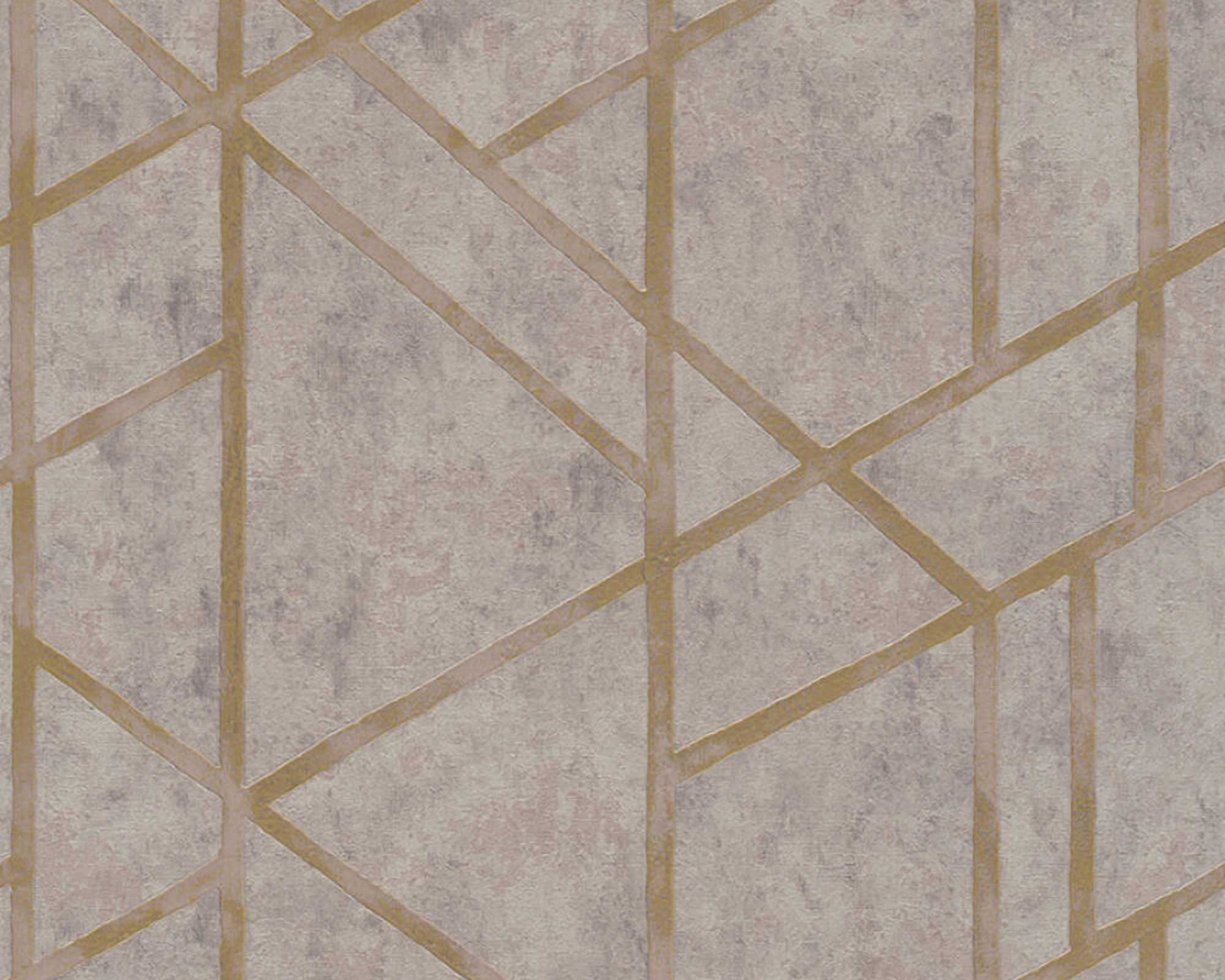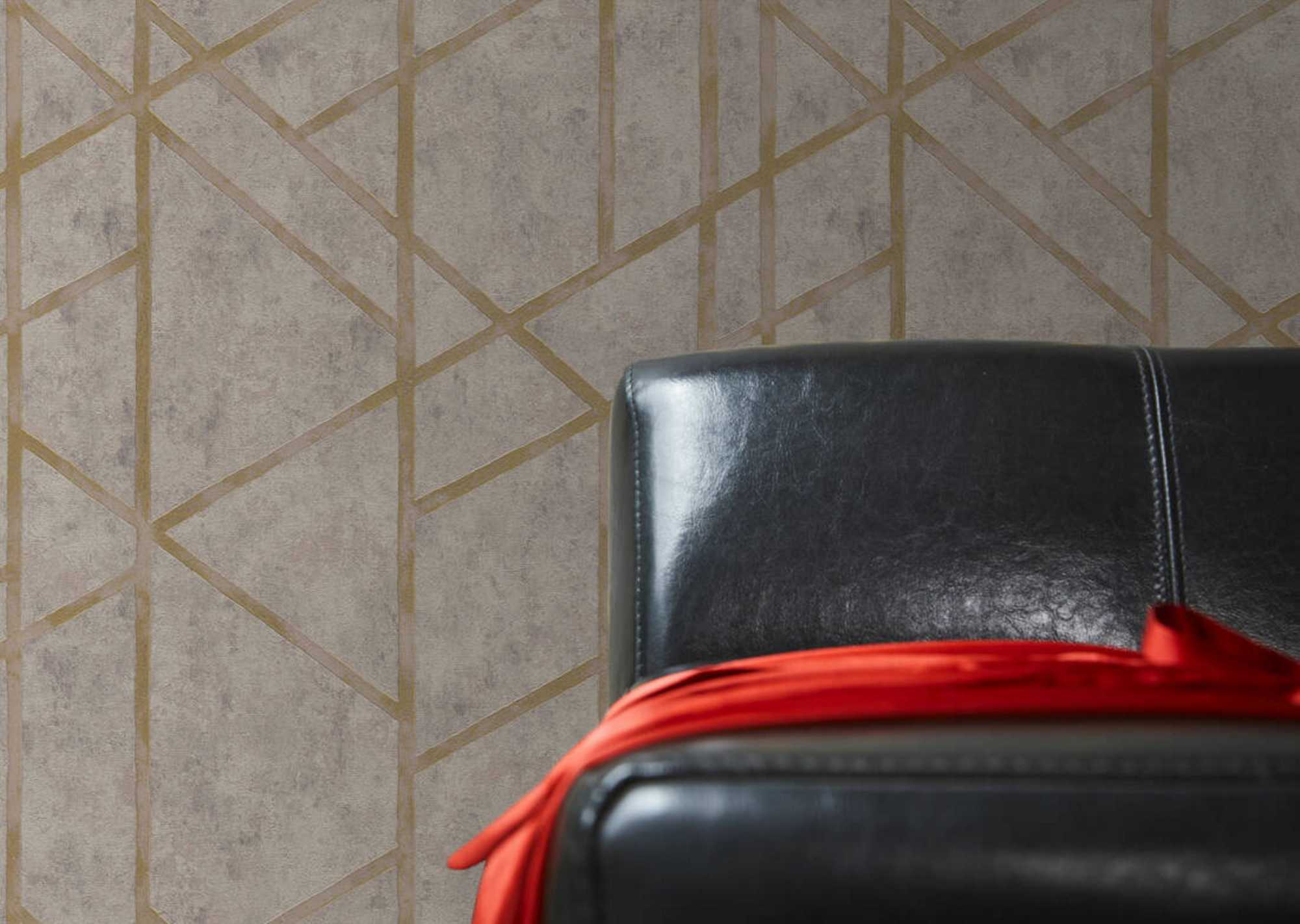 Ταπετσαρία τοίχου με μοντέρνα γεωμετρικά σχήματα σε μεταλλικό γκρι,μπεζ και χρυσό χρώμα για την συλλογή Metropolitan Stories.