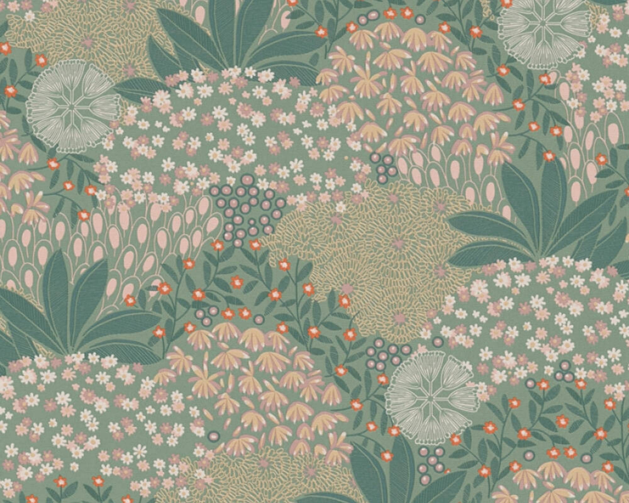 Φλοράλ μοτίβο σε πράσινο με ροζ αποχρώσεις για την συλλογή Nara.