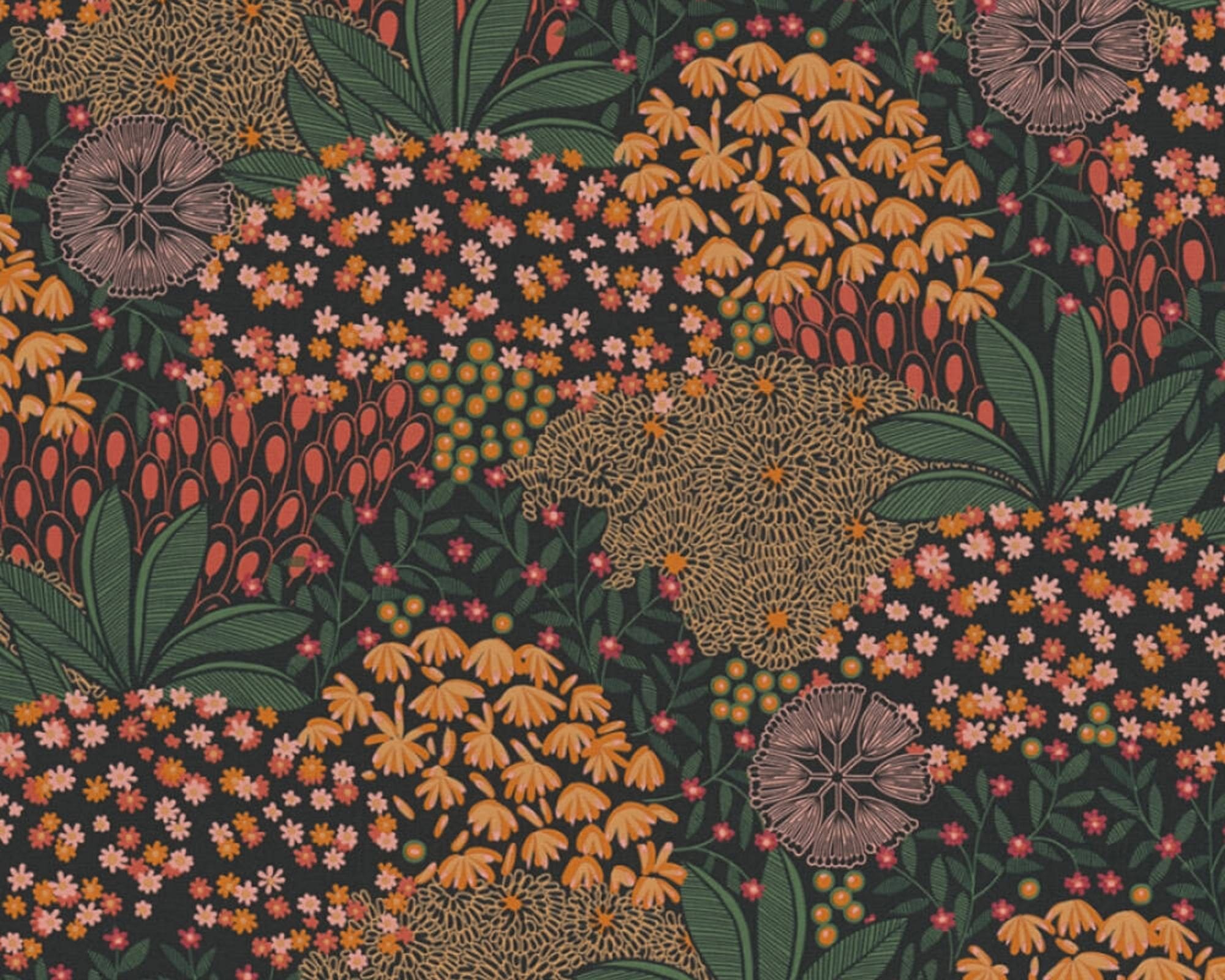 Φλοράλ μοτίβο σε μαύρο φόντο για την συλλογή Nara.