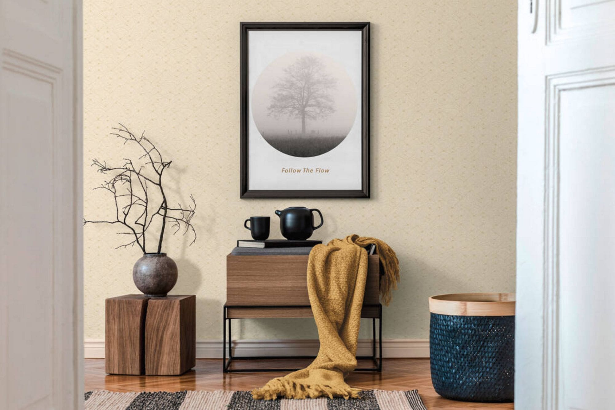 Λουλούδια, πεύκα και art deco. Η συλλογή ταπετσαριών Nara προσφέρει μια ποικιλία από φλοράλ και γραφικά μοτίβα σε εντυπωσιακούς κίτρινους, κόκκινους, τιρκουάζ και πράσινους τόνους που ζωντανεύουν τα δωμάτια και δημιουργούν μια φρέσκια και χαρούμενη ατμόσφαιρα. Η συλλογή είναι μια δημιουργική ερμηνεία του μοντέρνου σχεδιασμού τοίχων με διακριτικά φυσικά στοιχεία, μοτίβα art deco ή μονόχρωμα με διαφορετικές δομές. Στον κωδικό as387424 θα βρείτε μοντέρνο μοτίβο που θυμίζει κύματα και θα δώσει μια αίσθηση πολυτέλειας στον χώρο σας.