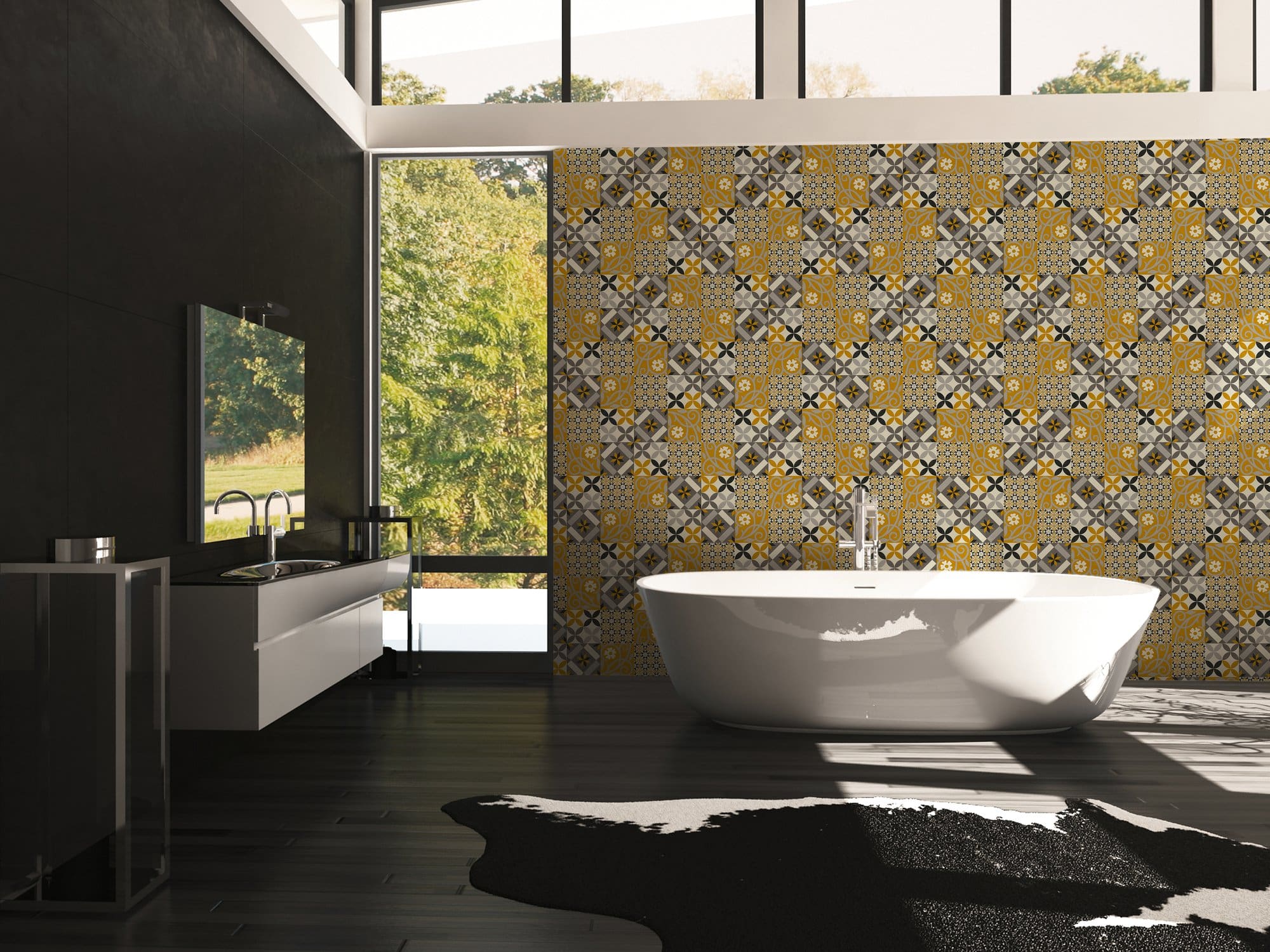 Ρετρό σχέδιο σε πλακάκια με μαύρο,γκρι και κίτρινο χρώμα για την συλλογή New Life.