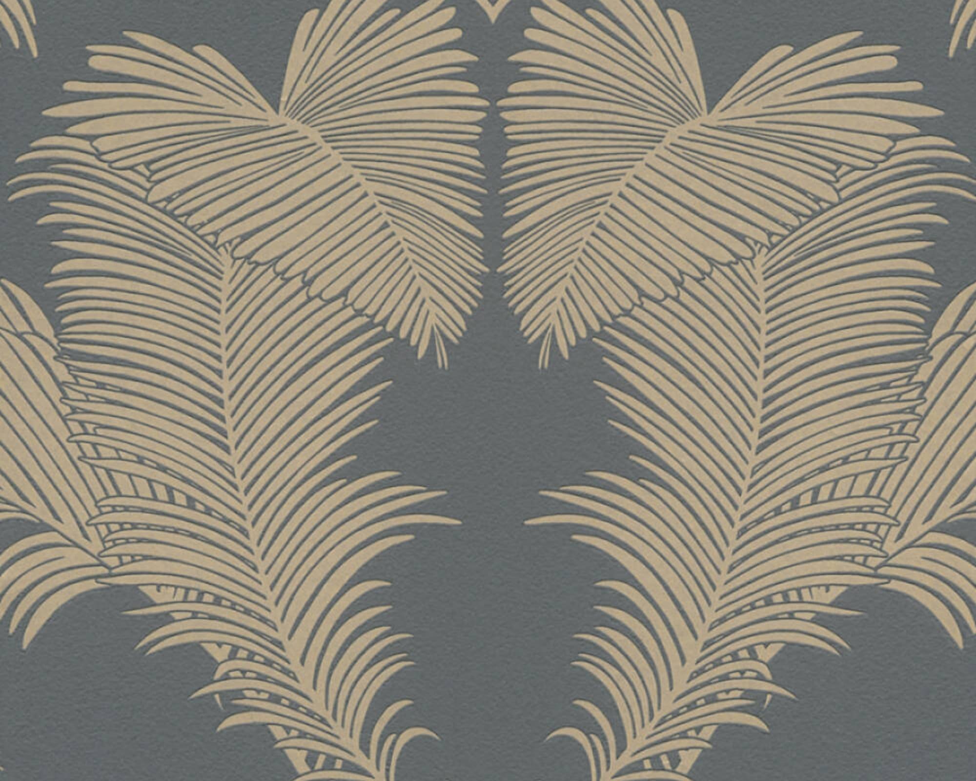 Φλοράλ ταπετσαρία τοίχου με φύλλα φοίνικα σε μαύρο και χρυσό χρώμα για την συλλογή Trendwall 2.