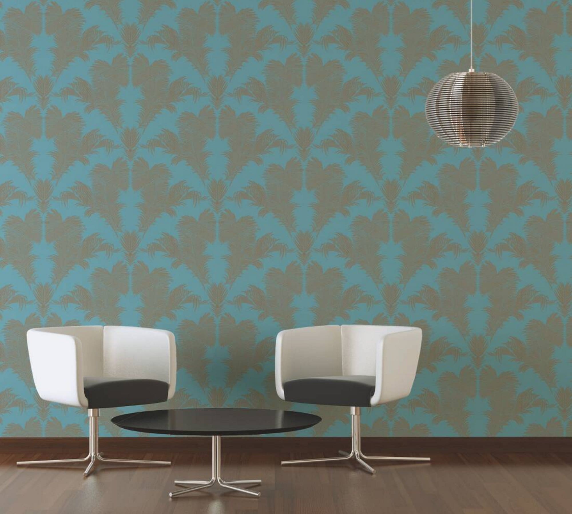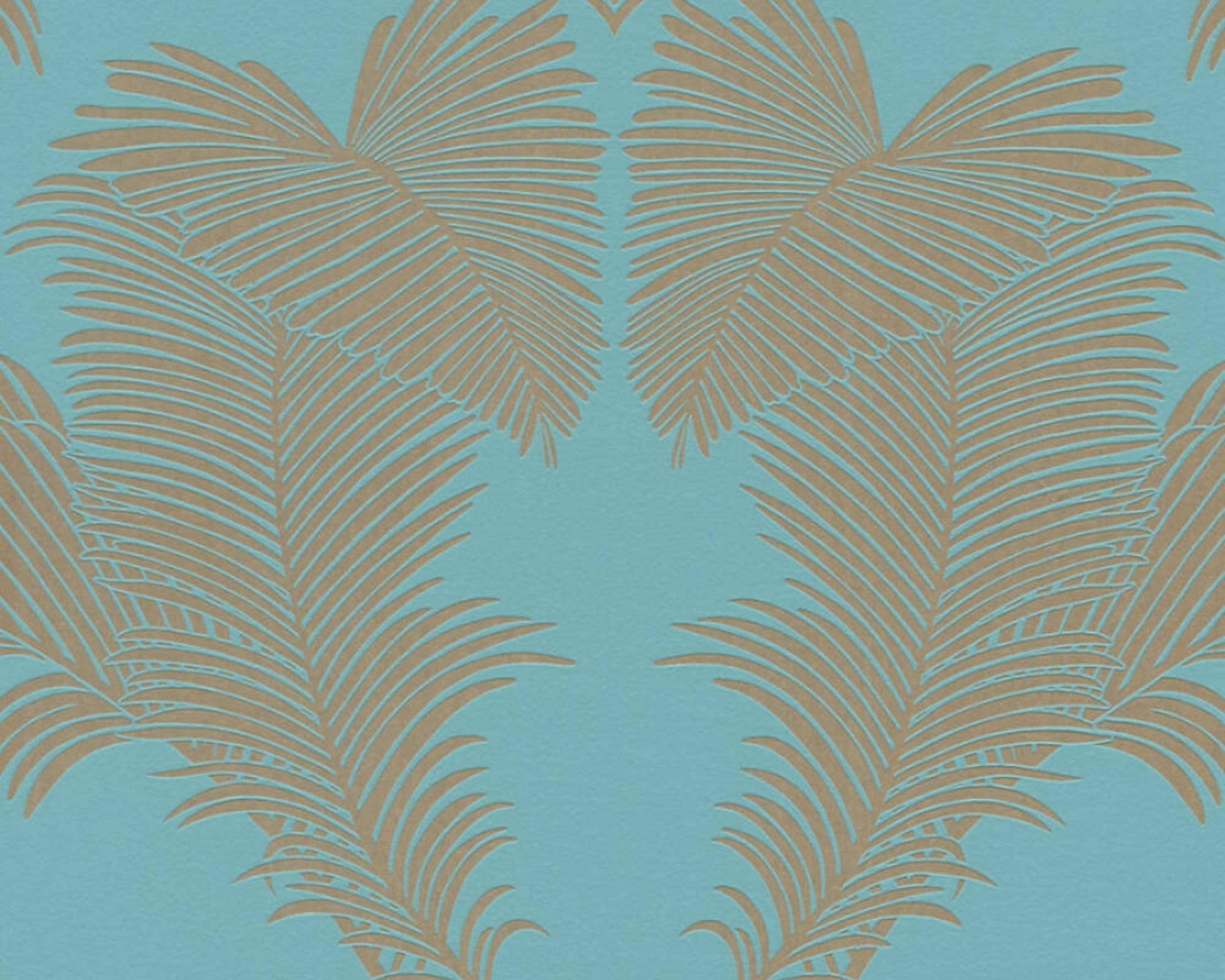 Φλοράλ ταπετσαρία τοίχου με φύλλα φοίνικα σε πετρόλ και χρυσό χρώμα για την συλλογή Trendwall 2.