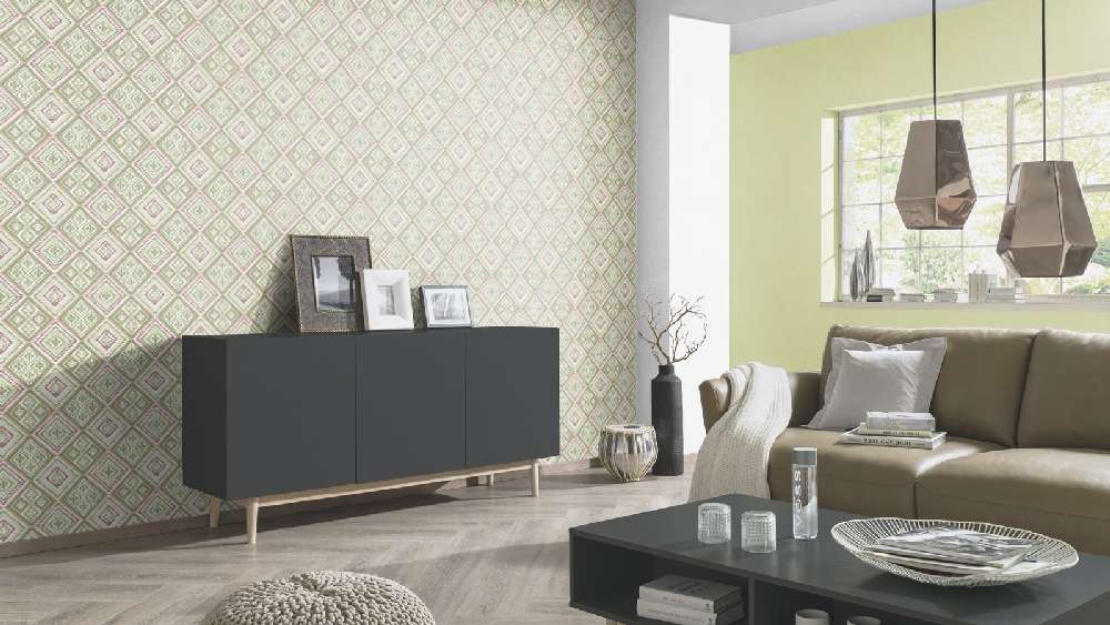 Η συλλογή Hacienda είναι ακριβώς η σωστή επιλογή για όσους λαχταρούν να ταξιδέψουν. Τα μοτίβα της Νότιας Αμερικής και τα χαλαρά, καλοκαιρινά χρώματα χαρακτηρίζουν το στυλ της συλλογής. Ένα ζωηρό μοτίβο φύλλων προκαλεί μια αίσθηση του Μεξικού στον τοίχο. Η απόλυτη εμφάνιση των Αζτέκων δημιουργείται από ένα πολύχρωμο μοτίβο διαμαντιών, το οποίο δίνει ένα νέο λάκτισμα σε κάθε στυλ ζωής. Αντίθετα, κομψά και έθνικ σχέδια δίνουν μια διαφορετική εμφάνιση. Οι εκλεπτυσμένες συνθέσεις χρωμάτων σε παστέλ ροζ ή μπρονζέ υπογραμμίζουν τον χαρακτήρα του κάθε μοτίβου. Γυρίστε το σπίτι σας με καλοκαιρινή διάθεση και αποκτήστε μοντέρνο λατινικό ύφος στο σαλόνι σας. Στον κωδικο 5411-05 θα βρείτε ένα κομψό σχέδιο Αζτέκων με ρόμβους σε τέσσερις διαφορετικές αποχρώσεις.