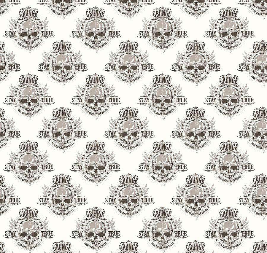 Μοντέρνο σχέδιο με νεκροκεφαλές σε λευκό με γκρί για την συλλογή Grunge.