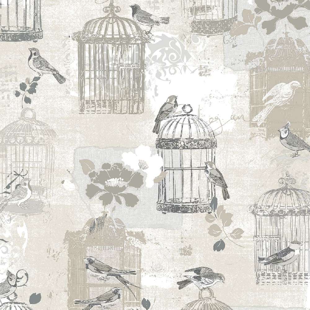 Βίντατζ σχέδιο με κλουβιά και πουλιά σε γκρί αποχρώσεις για την συλλογή Kitchen Style 3.