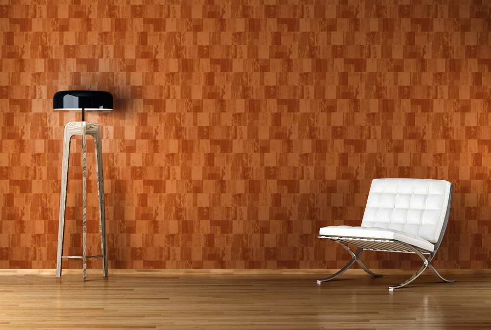 Ταπετσαρία τοίχου με γεωμετρικά σχήματα σε καφέ, πορτοκαλί και μεταλλικό χρώμα για την συλλογή Titanium 2.
