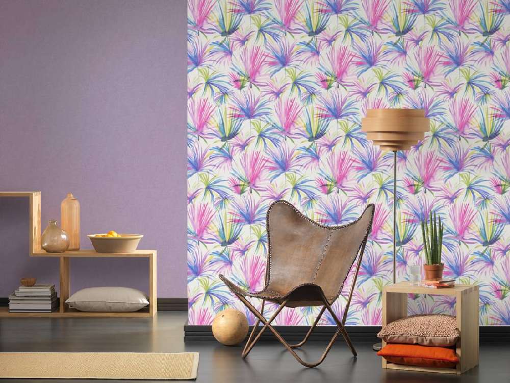 Η συλλογή «Colibri» από την «A.S. Création» δείχνει εξωτικά φυτά και λουλούδια στα φωτεινά χρώματα του ουράνιου τόξου. Οι ταπετσαρίες ταιριάζουν απόλυτα σε μοντέρνους εσωτερικούς χώρους με φωτεινά έπιπλα και φυσικά χρώματα σε αξεσουάρ. Αυτό είναι το πώς οι ταπετσαρίες σας κάνουν ευτυχισμένους! Στον κωδικό 366243 θα βρείτε ένα σχέδιο με φοίνικες σε χαρούμενα σχέδια.