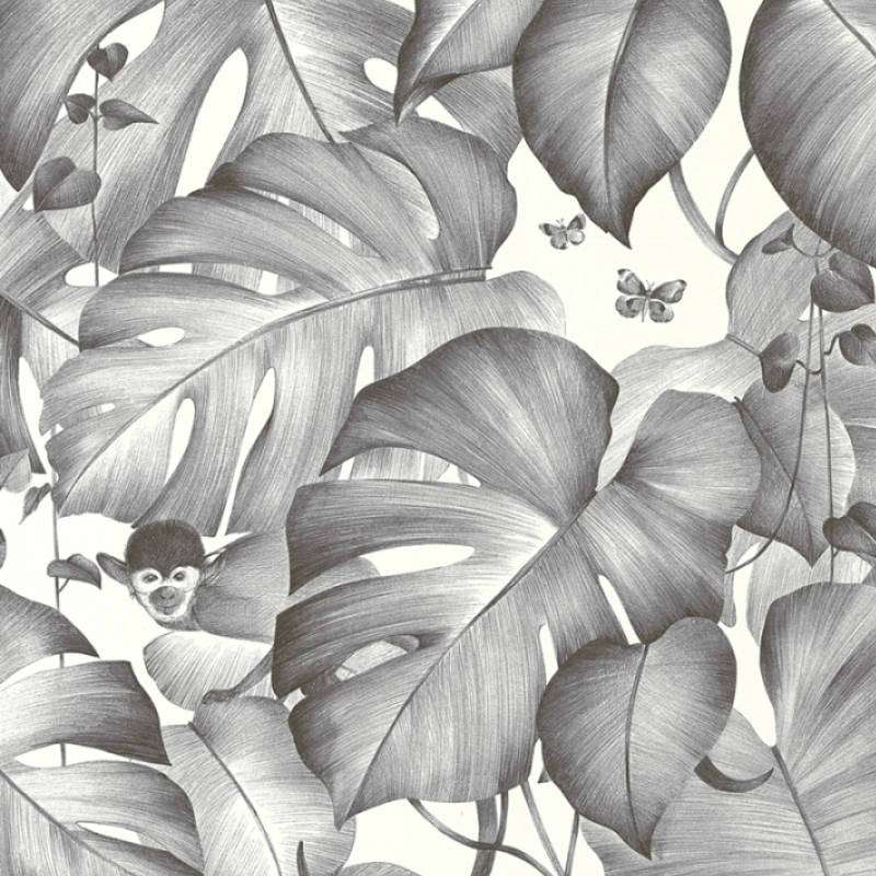 Σχέδιο με φυτά και μαιμούδες σε γκρί αποχρώσεις για την συλλογή Colibri.