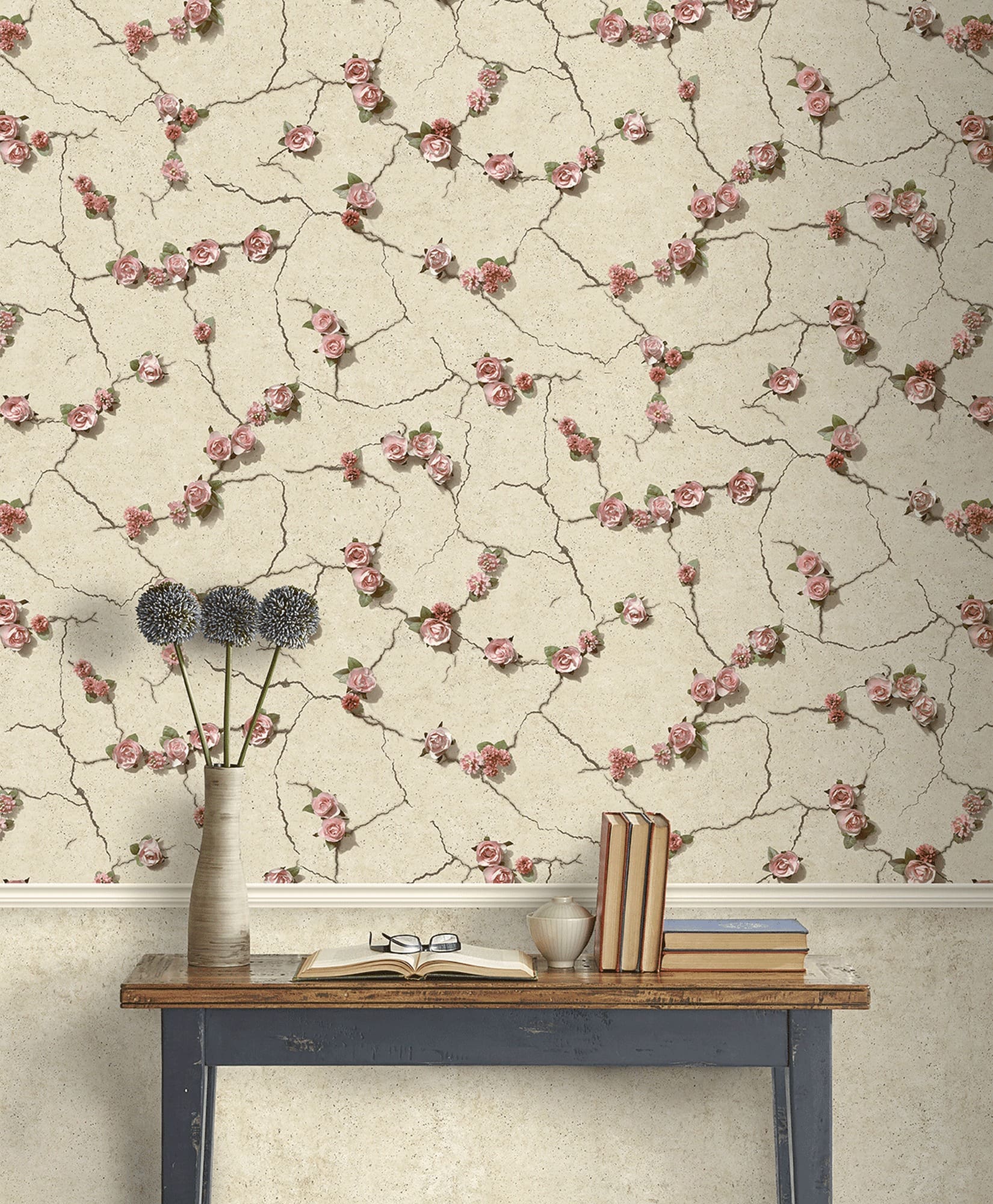 Ροζ τριαντάφυλλα σε μπεζ τσιμέντο για την συλλογή Escapade.