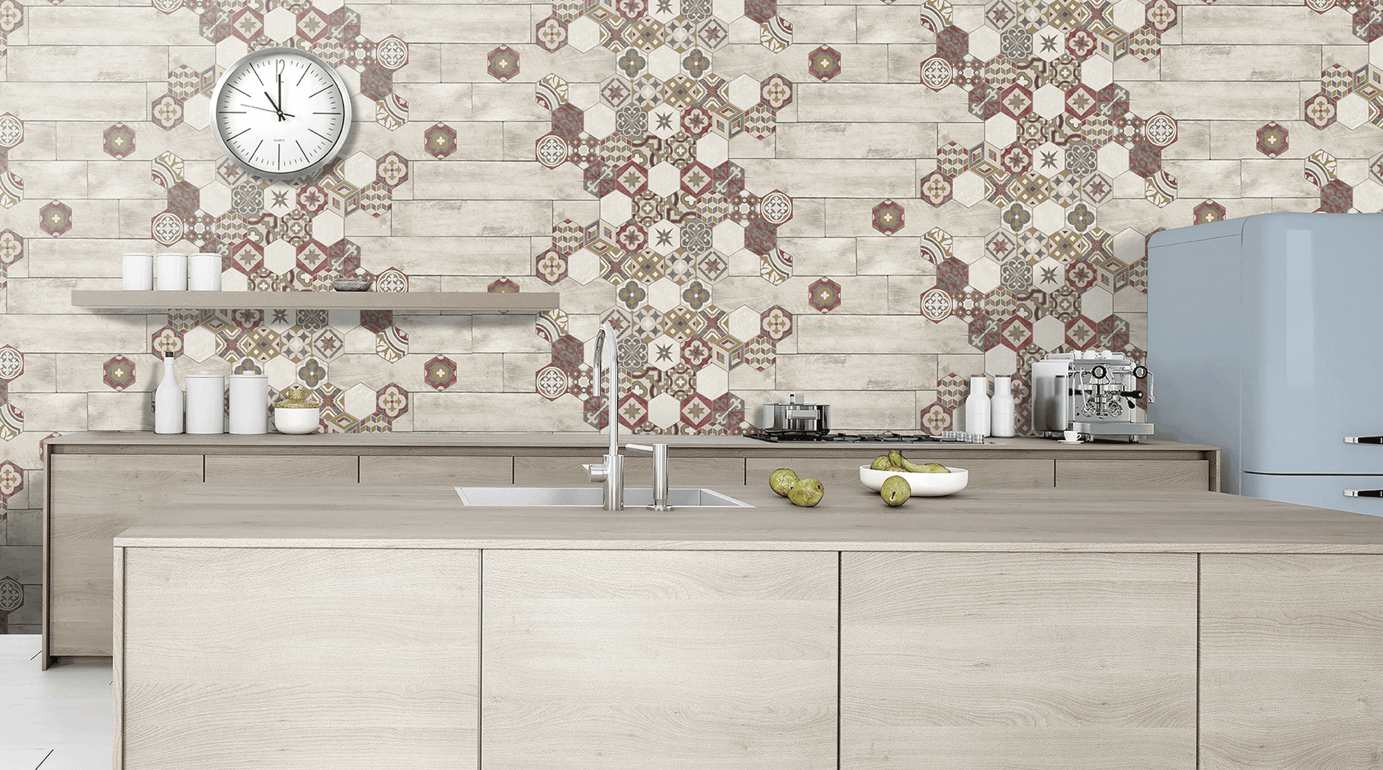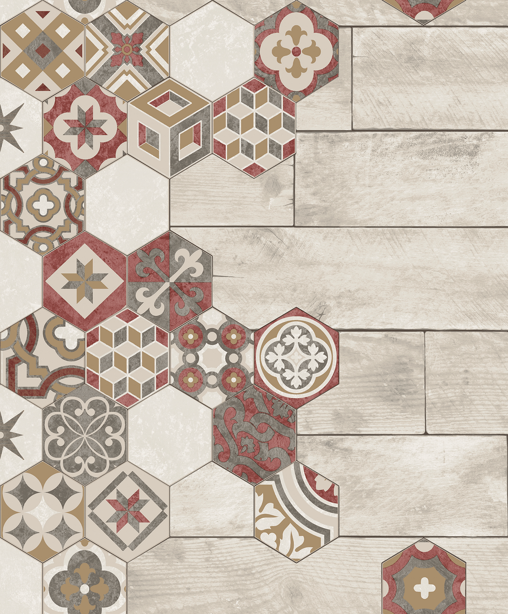 Μπεζ ξύλο με πολύχρωμα πολύγωνα πλακάκια για την συλλογή Reflets