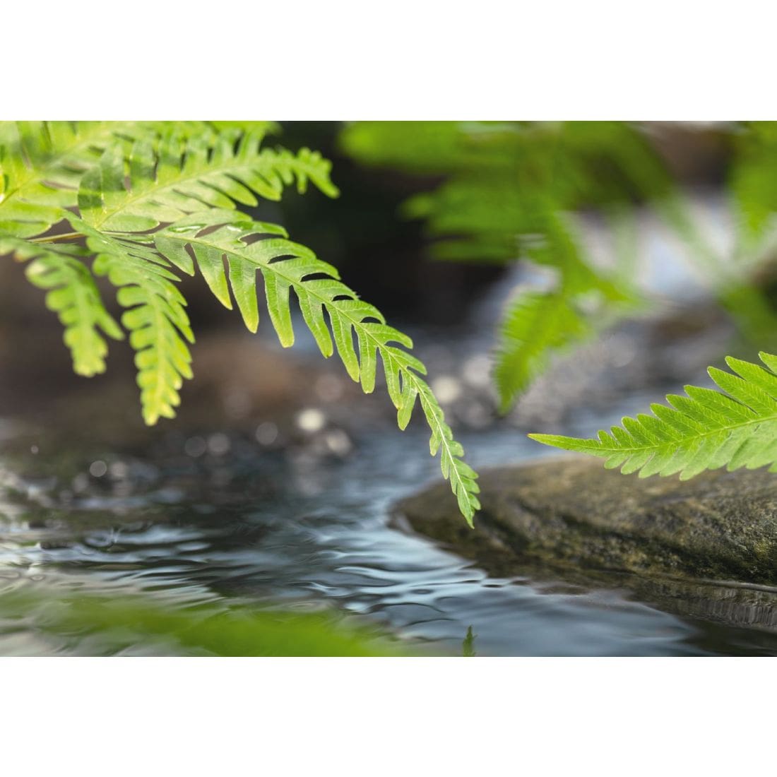 Ένα υπέροχο μοτίβο για να χαλαρώσετε σε κάθε στιγμή είναι αυτή η πράσινη φτέρη πάνω από τρεχούμενο νερό.