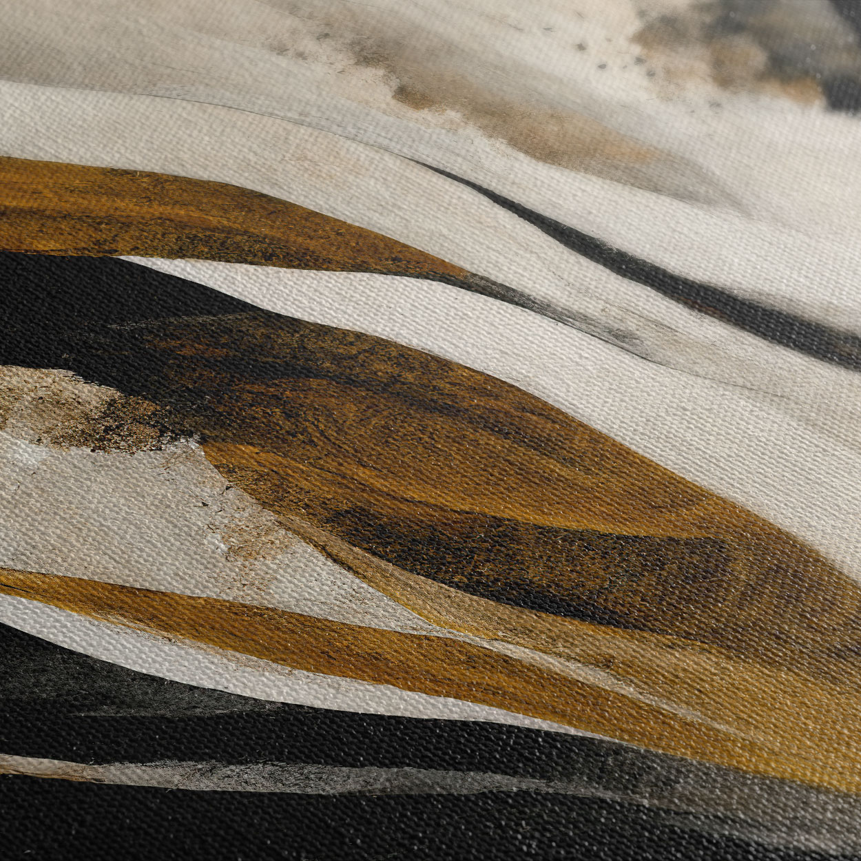 Μια επιβλητική και μοντέρνα σύνθεση που χαρακτηρίζεται από έντονες, οργανικές πινελιές σε μαύρο, γκρι και θερμό χρυσό.