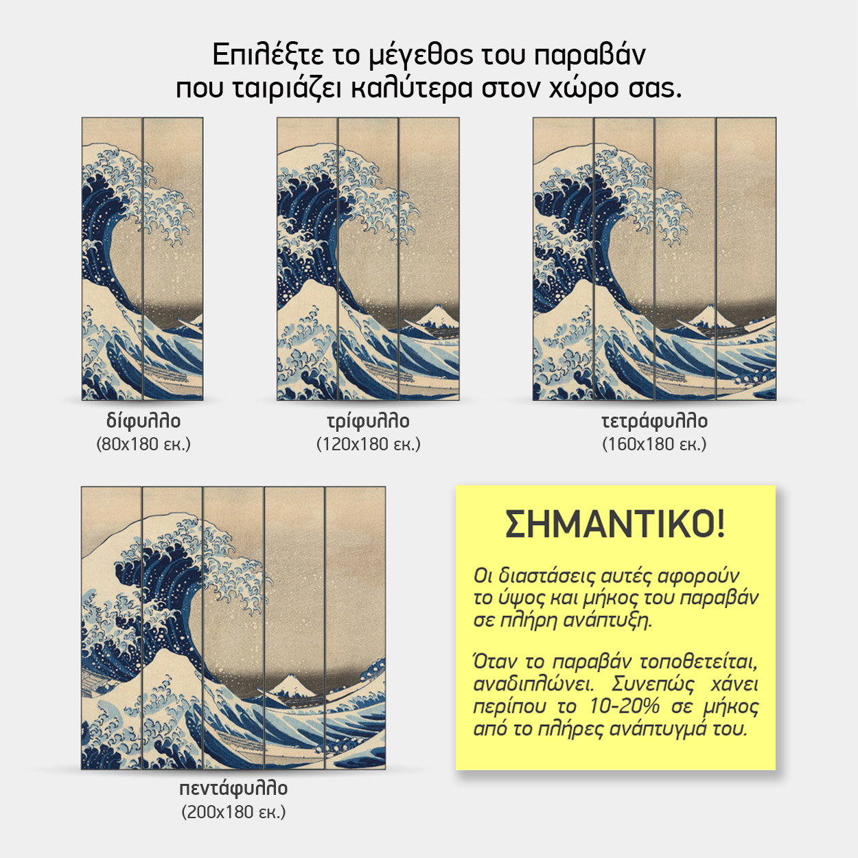 Σημαντική Σημείωση: Οι παραπάνω διαστάσεις αφορούν το παραβάν σε πλήρη ανάπτυξη. Κατά την τοποθέτηση, επειδή τα φύλλα αναδιπλώνονται (ζικ-ζακ) για να στέκονται, το ωφέλιμο μήκος μειώνεται κατά περίπου 10-20%.