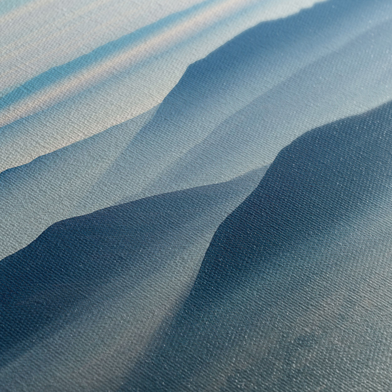 Μια αφαιρετική και γαλήνια σύνθεση που απεικονίζει διαδοχικές βουνοκορφές να χάνονται μέσα στην πρωινή ομίχλη.
