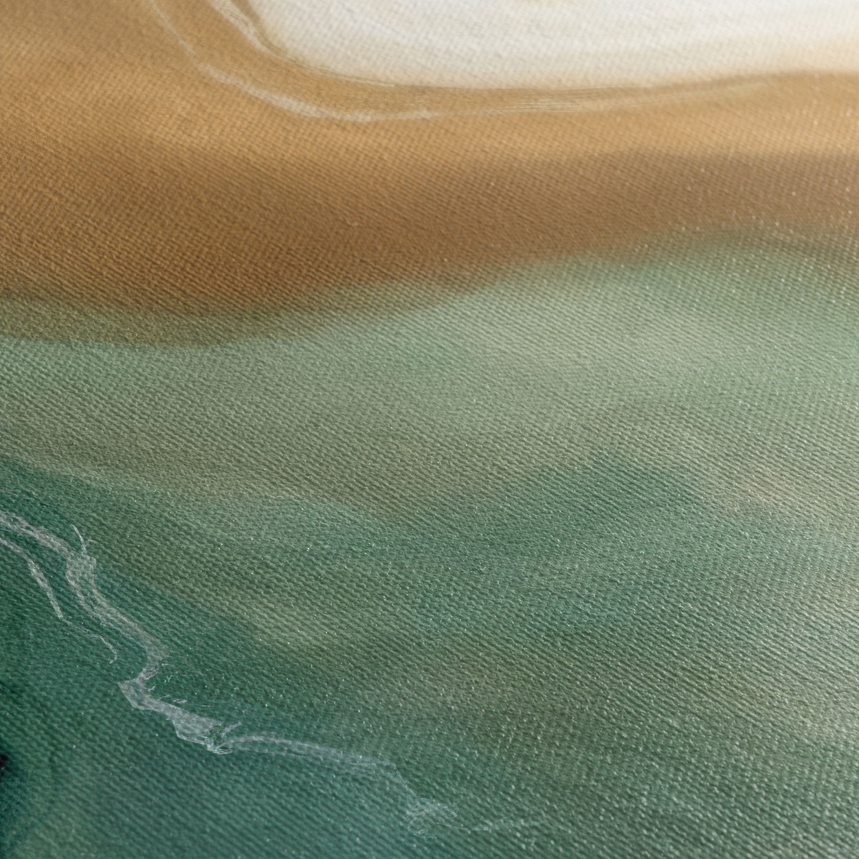 Μια καθηλωτική σύνθεση που συνδυάζει την ηρεμία του νερού με τη ζεστασιά της γης. Το σχέδιο "Σμαραγδένια Ροή" χαρακτηρίζεται από οργανικές φόρμες σε αποχρώσεις του βαθύ πετρόλ, του σμαραγδένιου πράσινου και της ώχρας, που σμίγουν αρμονικά με λευκούς κυματισμούς και λεπτές χρυσές λεπτομέρειες.