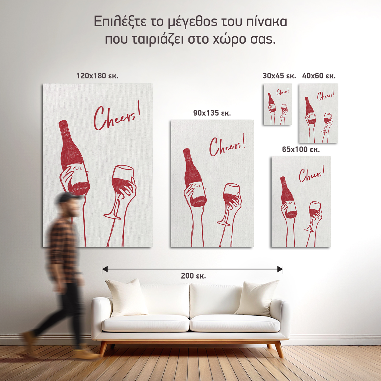 1. Ιδανικό ύψος: 145-165 εκ. από το δάπεδο (κέντρο πίνακα)