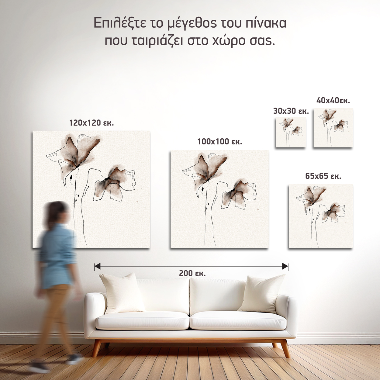 1. Ιδανικό ύψος: 145-165 εκ. από το δάπεδο (κέντρο πίνακα)
