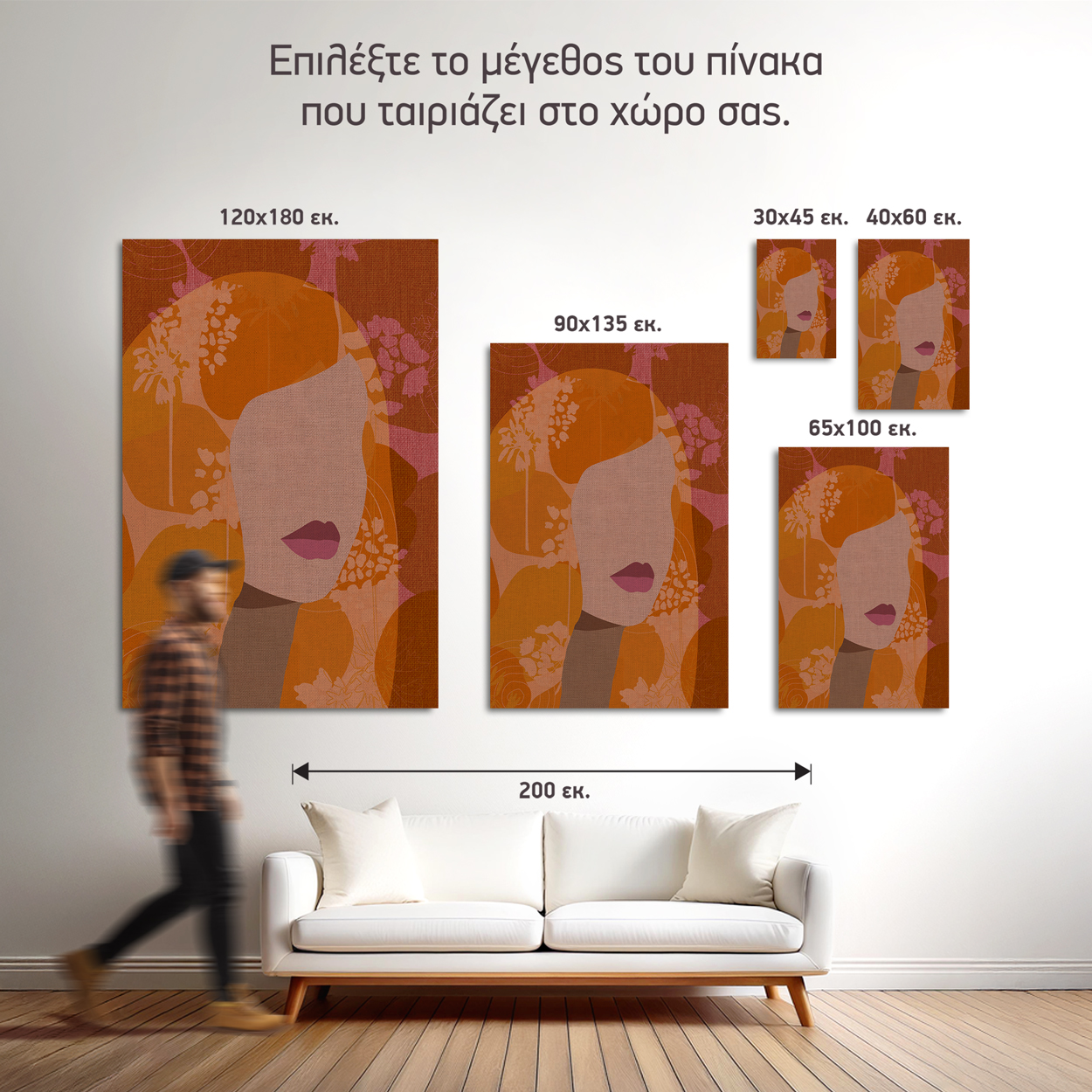 Πίνακας Ζωγραφικής Modern Abstract Portrait - Decotek 222374 Πίνακας Ζωγραφικής με ένα ατμοσφαιρικό και σοφιστικέ έργο που συνδυάζει τη μινιμαλιστική προσωπογραφία με τη ζεστασιά των γήινων χρωμάτων, δημιουργώντας μια αίσθηση ηρεμίας και εσωτερικότητας στον χώρο σας. Μια αφαιρετική γυναικεία μορφή με μακριά πορτοκαλί μαλλιά, της οποίας τα χαρακτηριστικά παραμένουν μυστηριωδώς κρυμμένα, τονίζοντας μόνο τα χείλη σε μια απαλή ροζ απόχρωση. Η ιδανική επιλογή για διακόσμηση Boho Chic, Earthy Modern ή Warm Minimal. Ταιριάζει απόλυτα πάνω από έναν ξύλινο μπουφέ, σε ένα σαλόνι με φυσικά υλικά ή σε ένα ατμοσφαιρικό υπνοδωμάτιο. Ο όρος "σκοτία" στις κορνίζες προέρχεται από την αρχαία ελληνική λέξη "σκοτία" που σημαίνει σκοτάδι. Αυτή η λέξη χρησιμοποιείται για να περιγράψει το σκοτεινό μέρος της κορνίζας, όπου το ξύλο σκιάζει το περιθώριο του καμβά. Σκοπός της σκοτίας είναι να δημιουργήσει μια οπτική αίσθηση εστίασης στο έργο τέχνης, καθιστώτας το πιο επικεντρωμένο στο μάτι του θεατή. Για οποιαδήποτε διάσταση πέραν των τυποποιημένων διαστάσεων ή για κάποιο σχέδιο της επιλογής σας επικοινωνήστε μαζί μας στο 2310 579 990. Ο χρόνος παράδοσης είναι 4-6 εργάσιμες μέρες.
